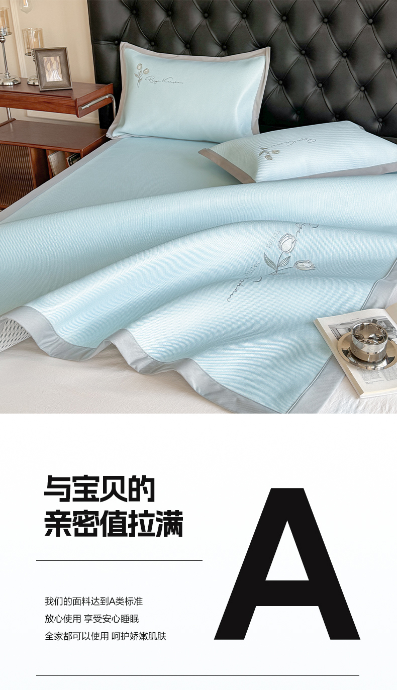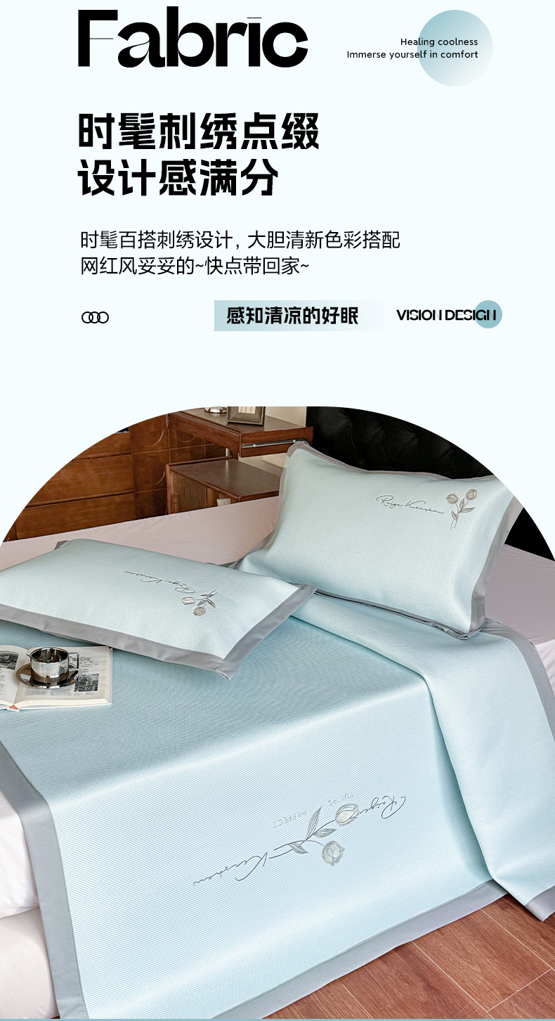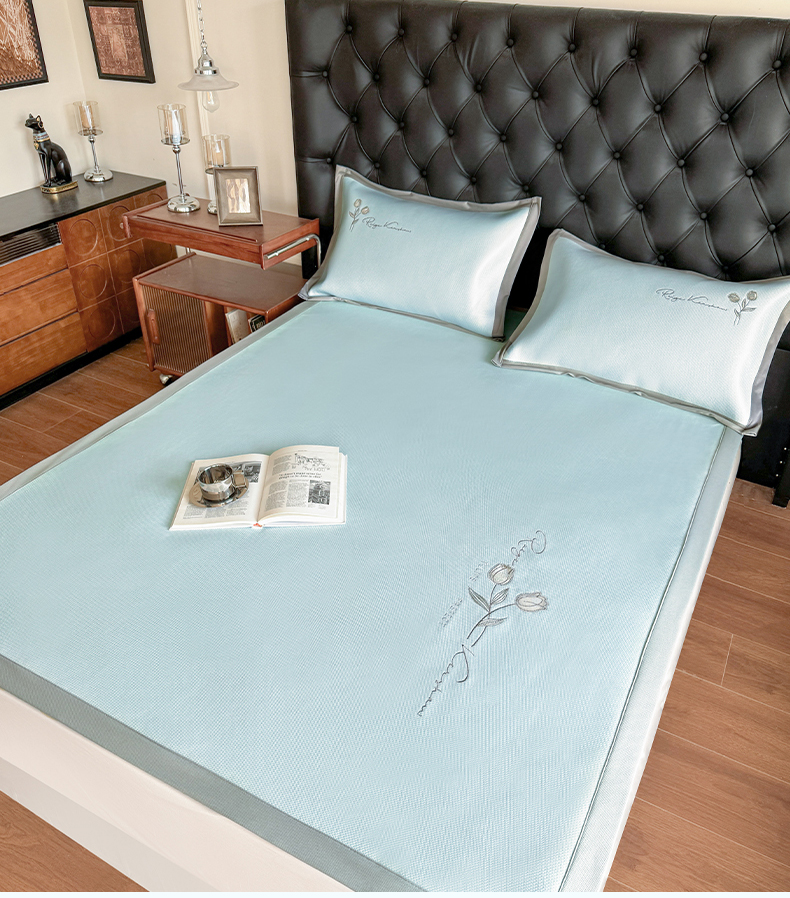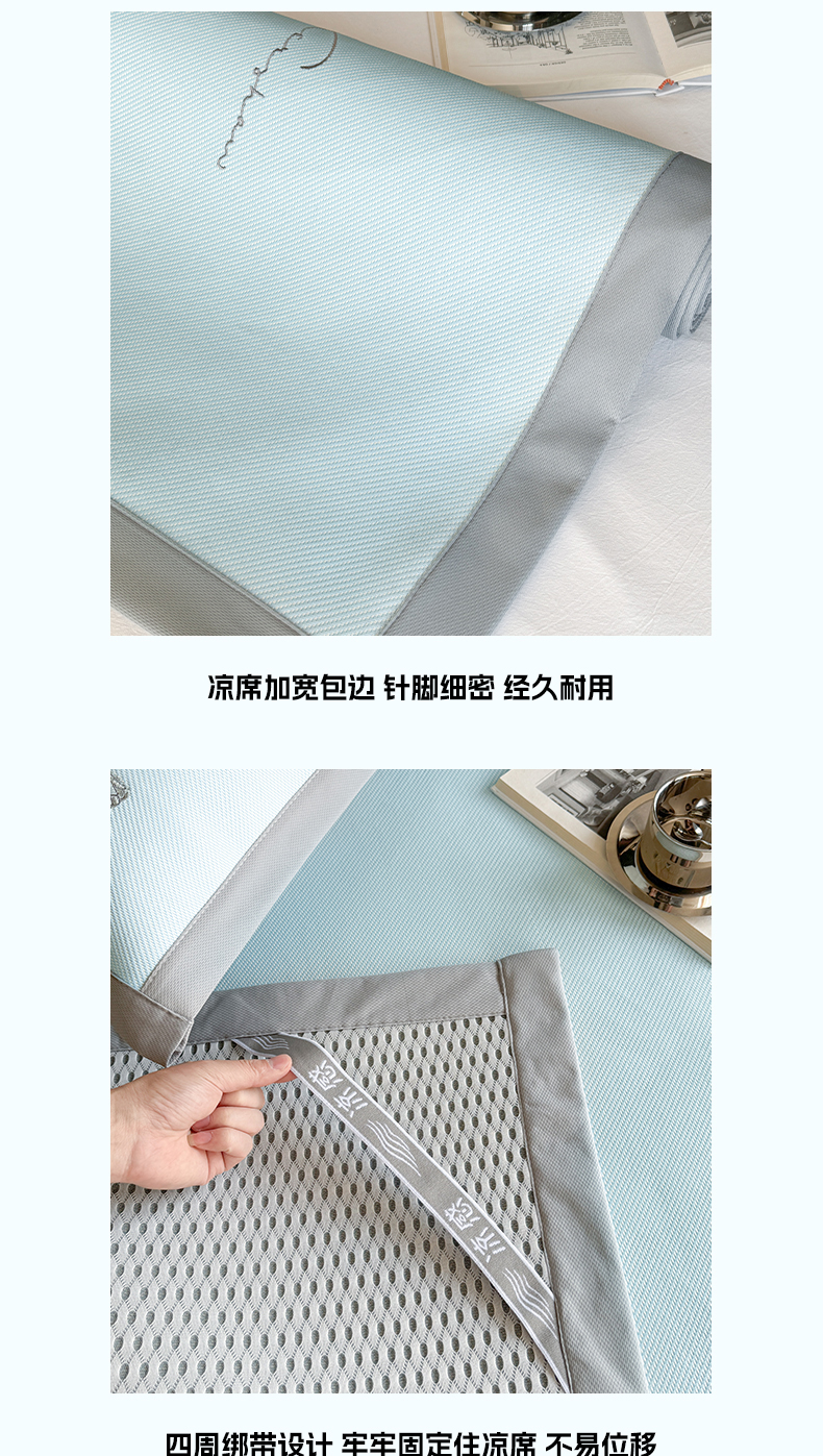 商品名称:格真 2025新款A类中分子PE瞬间凉感刺绣冰藤席高端复合三明治加密软凉席可折叠空调席藤席 凉感冰腾-兰
