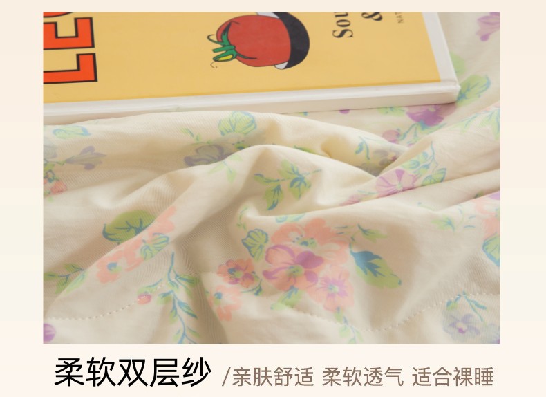博睿家纺 2025新款A类水洗双层纱皱皱纱大豆纤维被夏被夏凉被空调被 夕颜