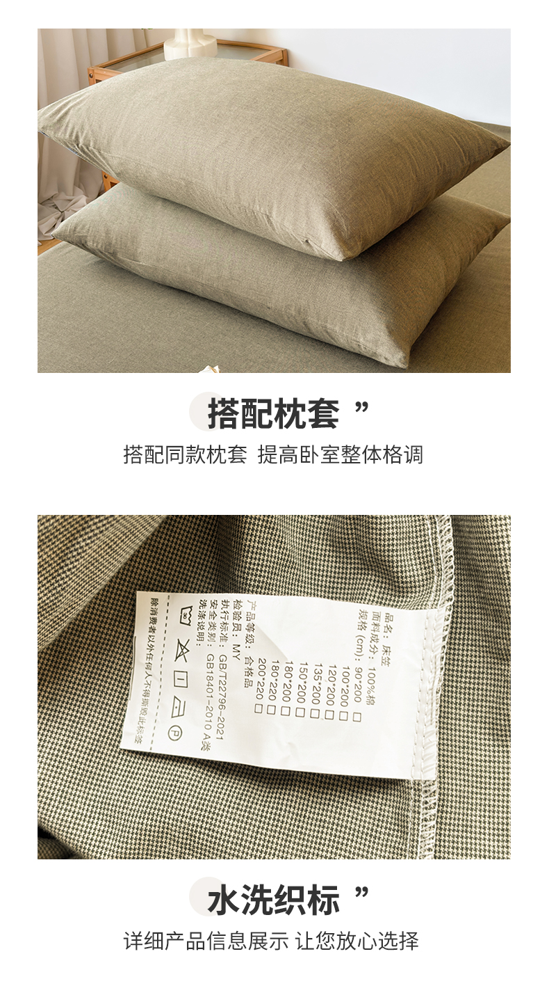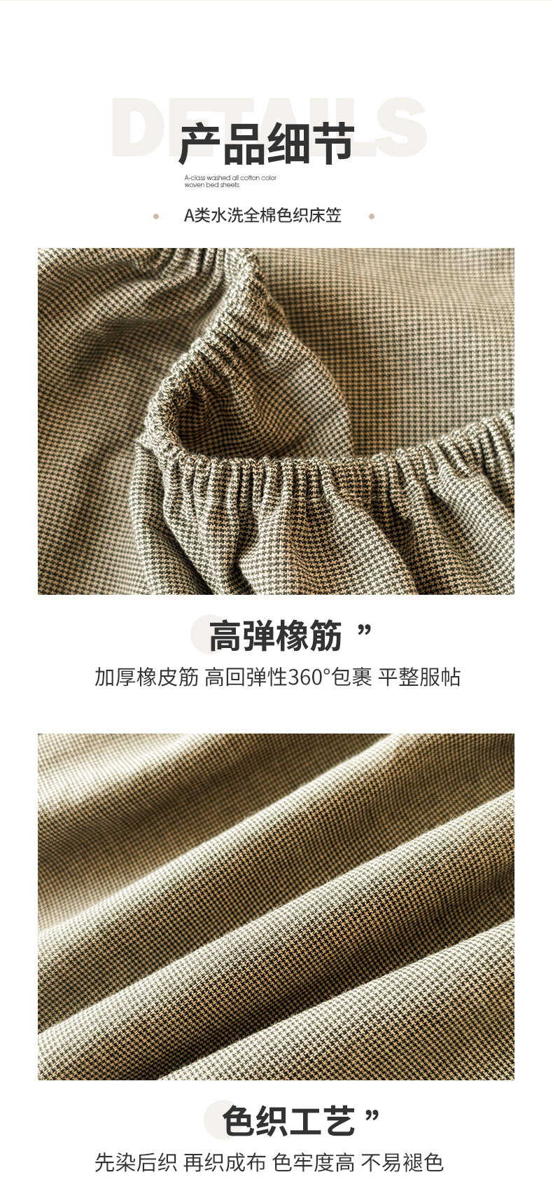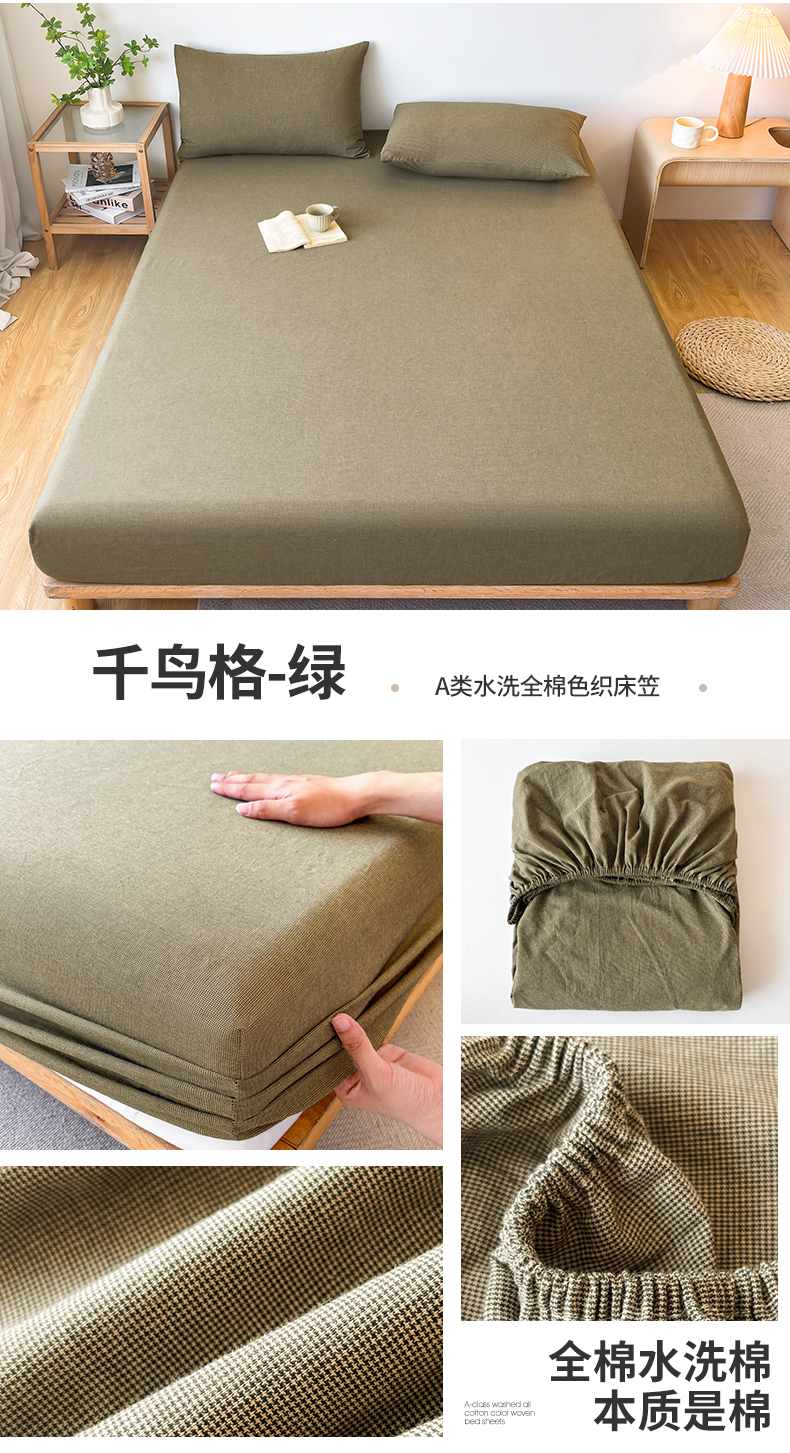 • 91家纺网 家纺一手货源 找家纺 名优家纺 2025新款全棉色织水洗棉单品系列-单床笠 千鸟格-绿