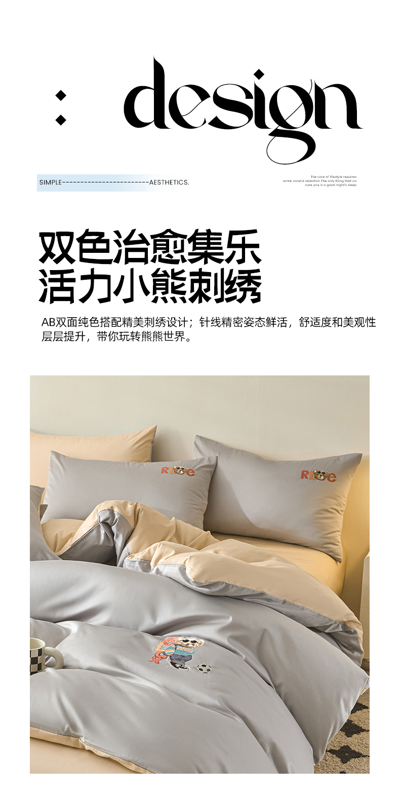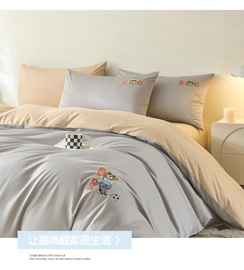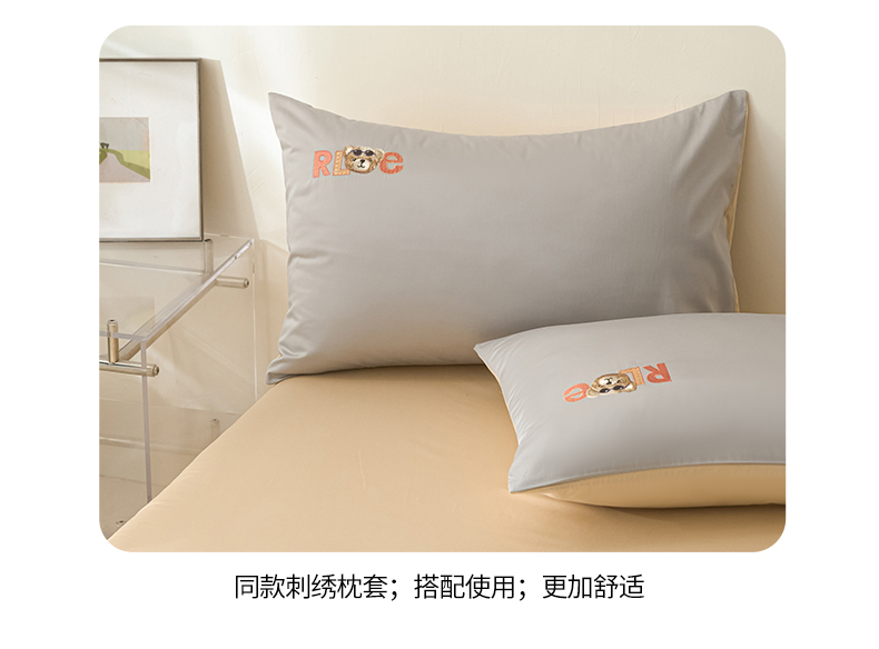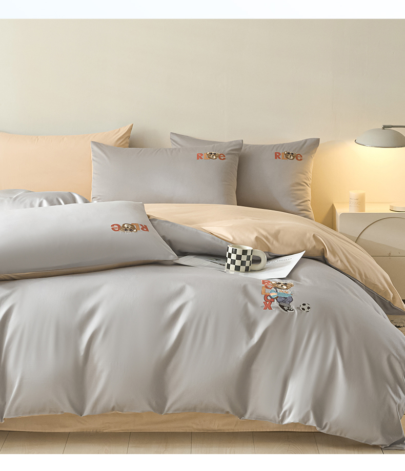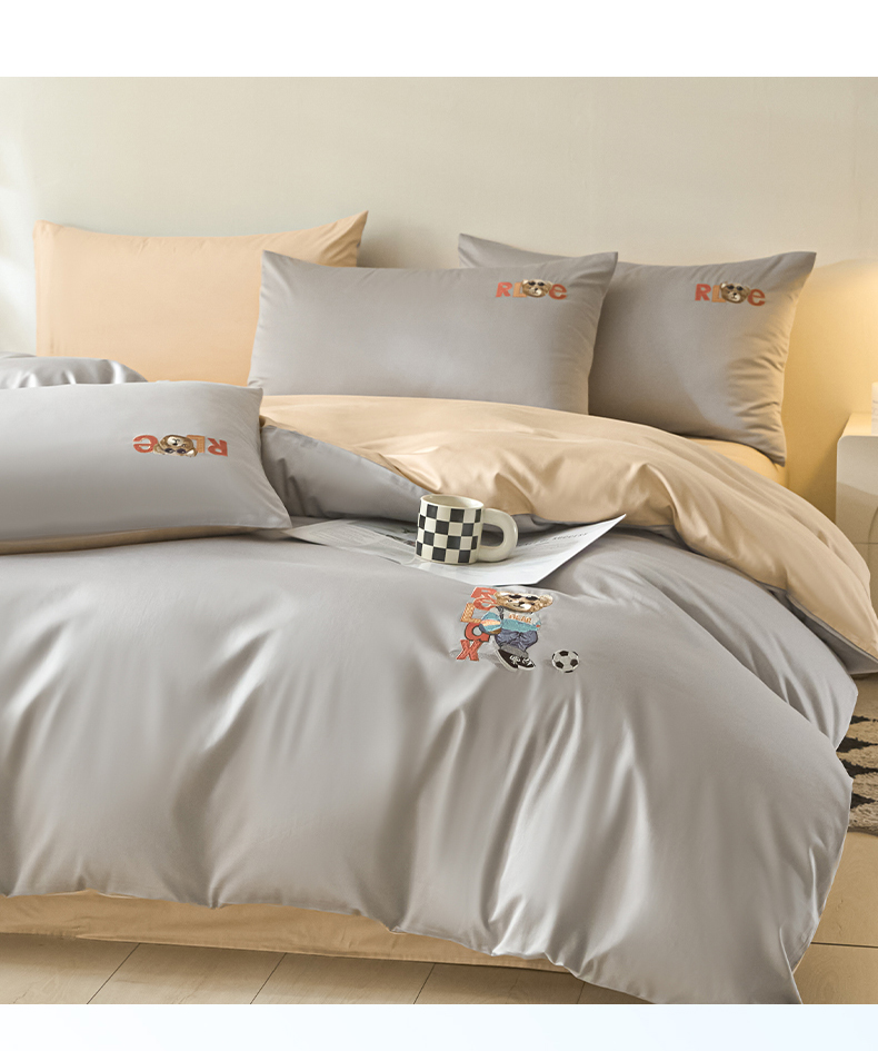 拼社家纺 2025新款全棉长绒棉四件套纯棉四件套小熊刺绣床上用品【提供买家秀】 可爱熊-灰卡其