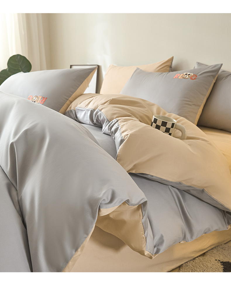 (总)拼社家纺 2025新款母婴及全棉水洗棉刺绣四件套纯棉床上用品,艾玛绿+卡其,繁星蓝+卡其,繁星蓝+玫瑰粉,红豆沙+雅灰,迷雾灰+玫瑰粉,蜜粉+雅灰,奶油白+卡其,奶油白+香橙,牛仔蓝+浅蓝,香橙+雅灰