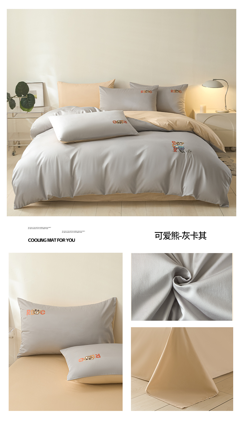 商品名称:拼社家纺 2025新款全棉长绒棉四件套纯棉四件套小熊刺绣床上用品【提供买家秀】 可爱熊-灰卡其