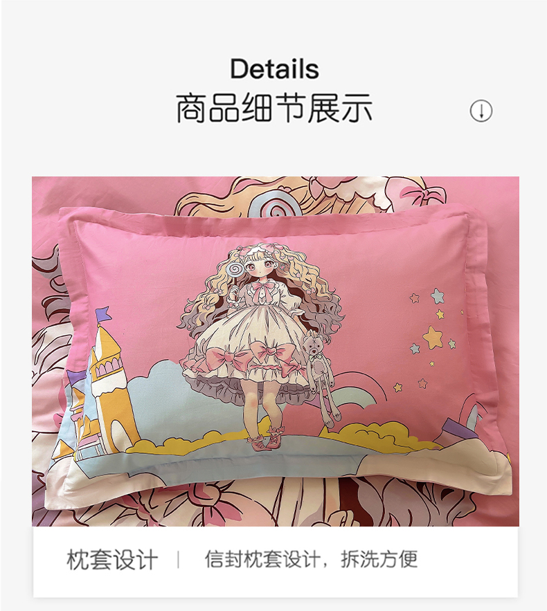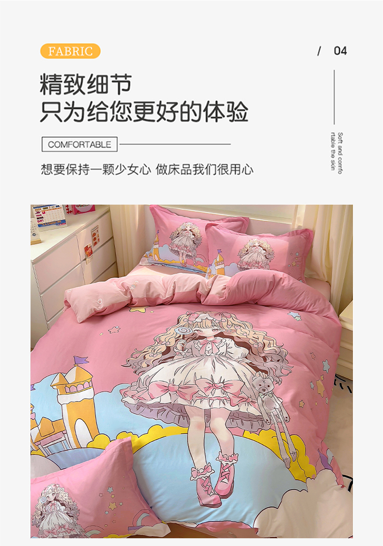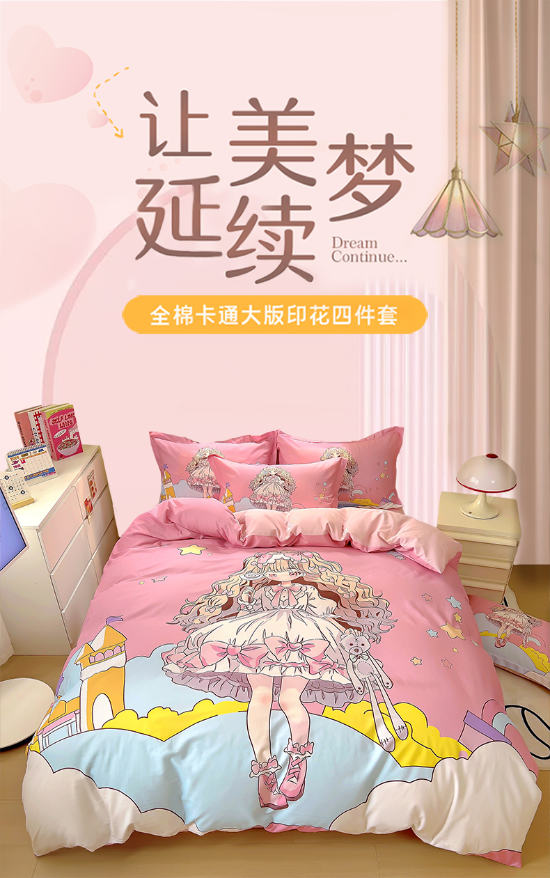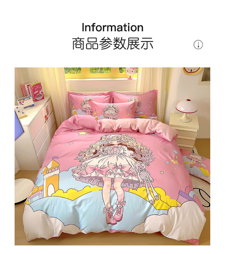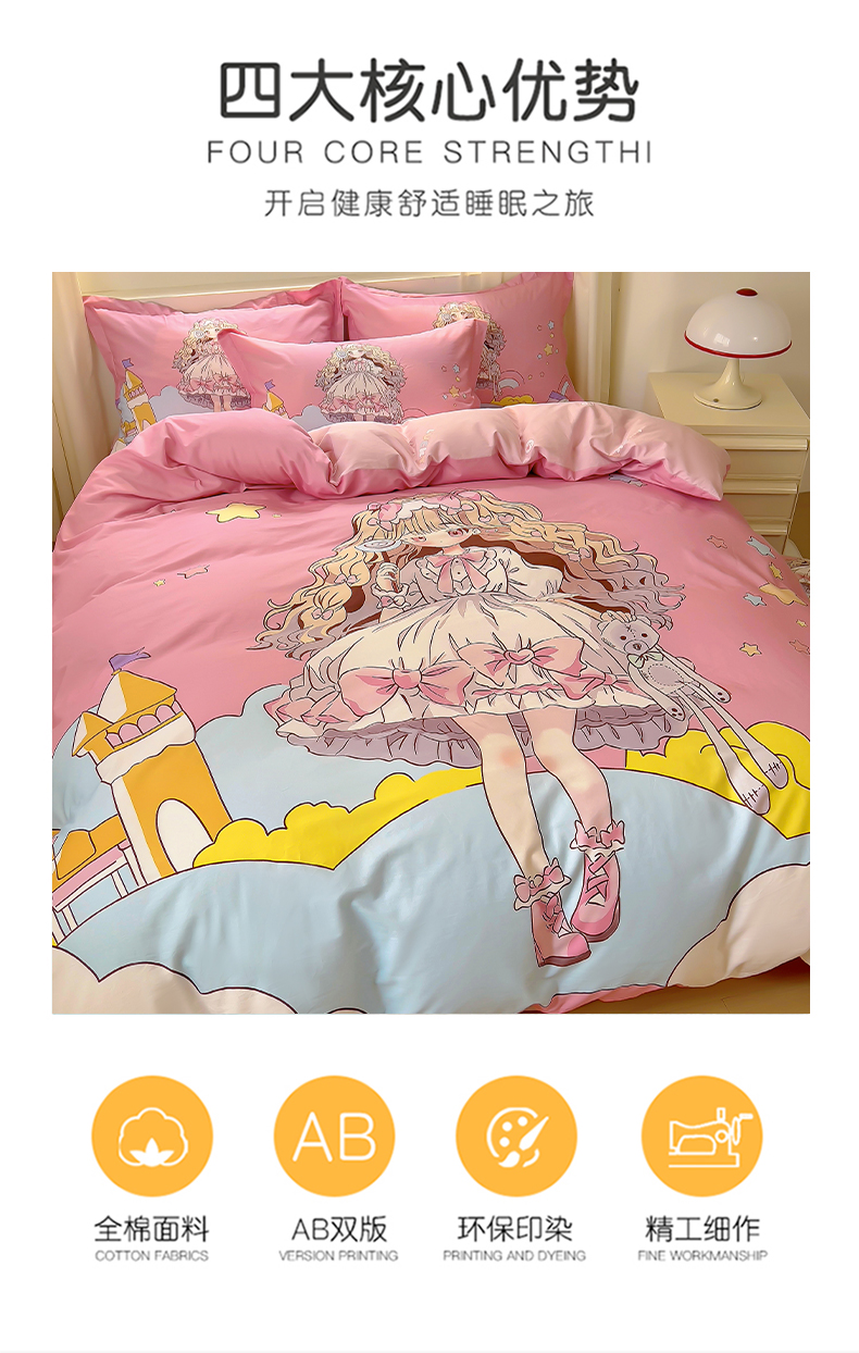 当前位置: 91家纺网 > 商品网购 > 床品套件 > 四件套 > 全棉普通四件套 > 浩诚 2025新款原创设计女孩全棉四件套 甜心女孩