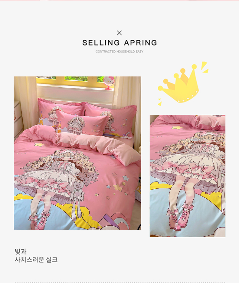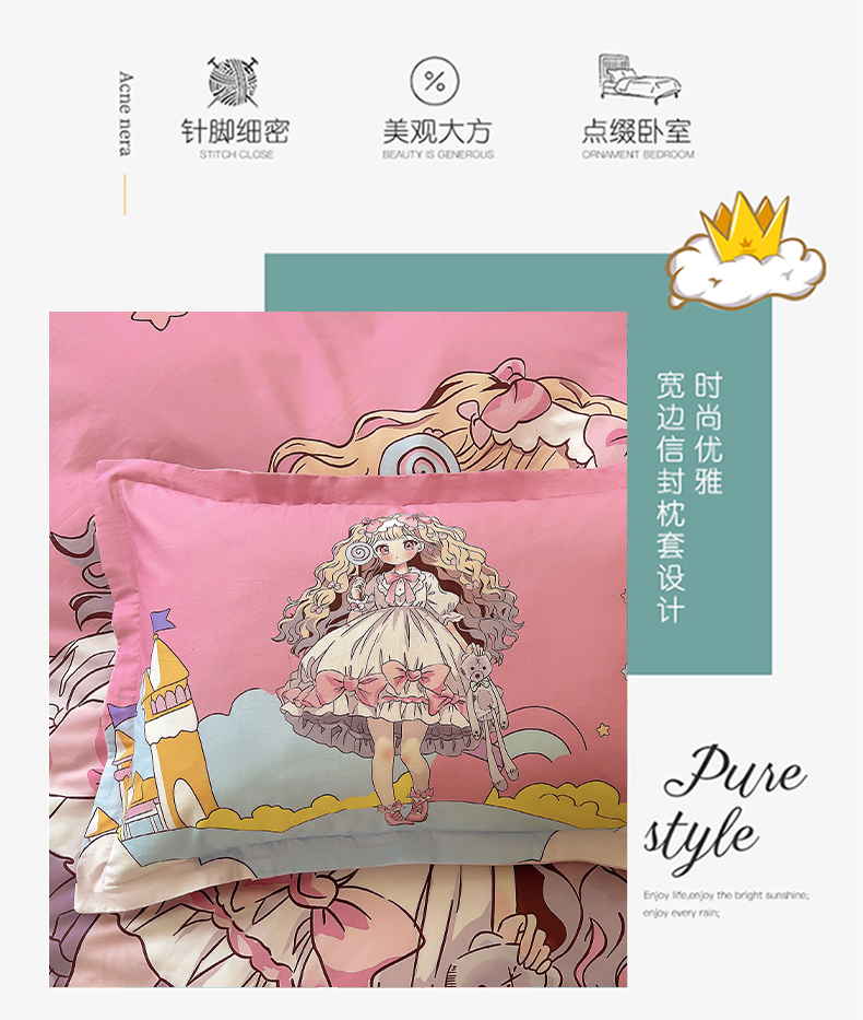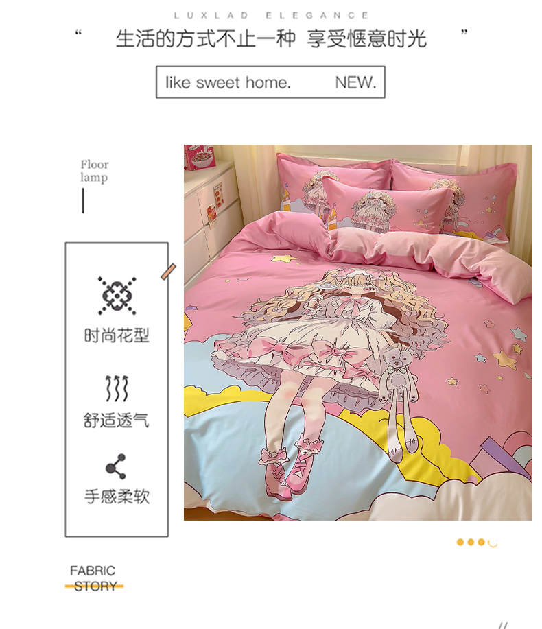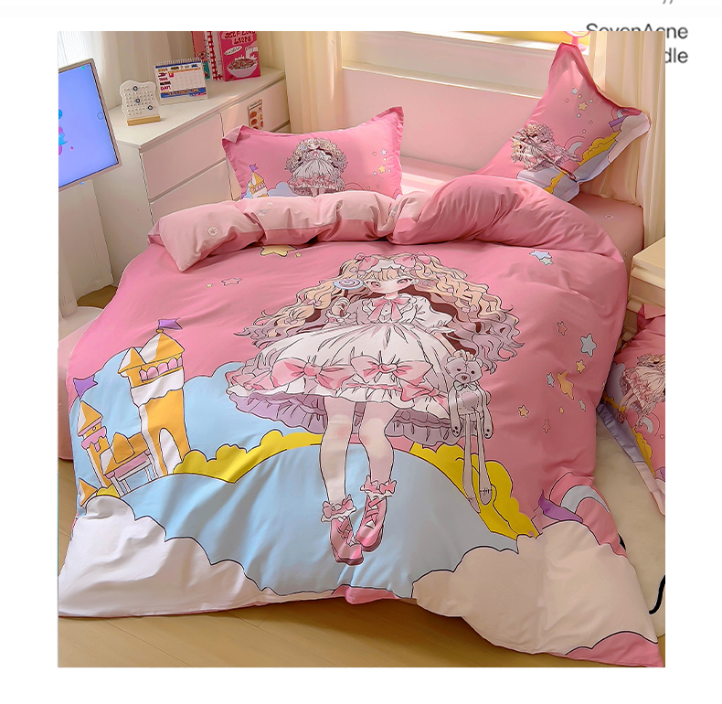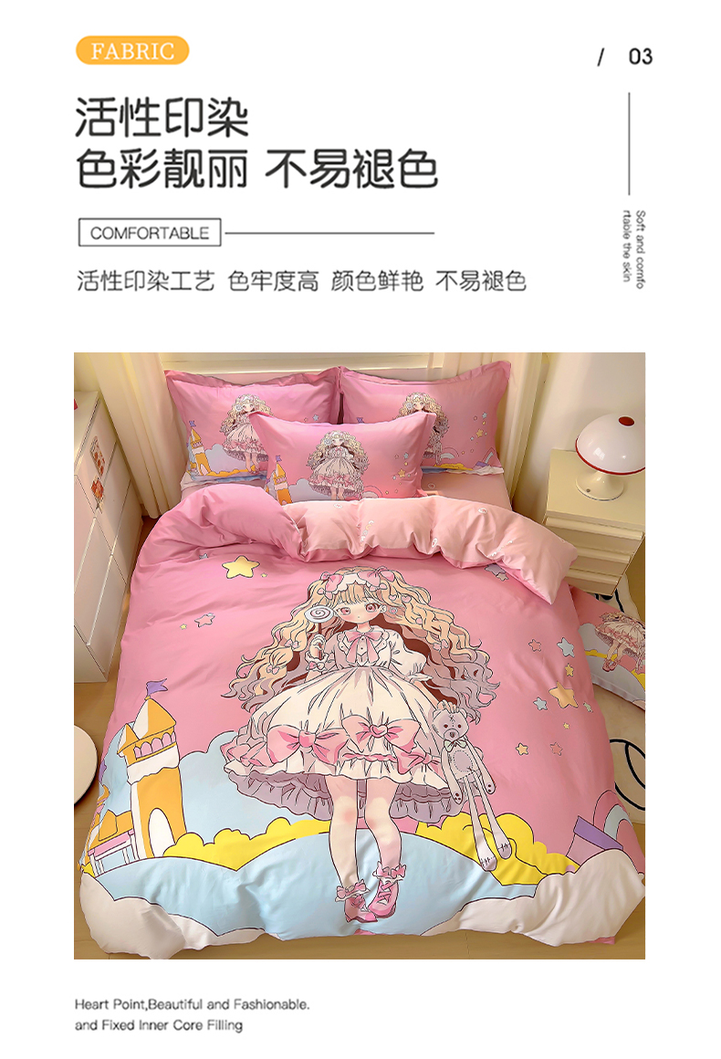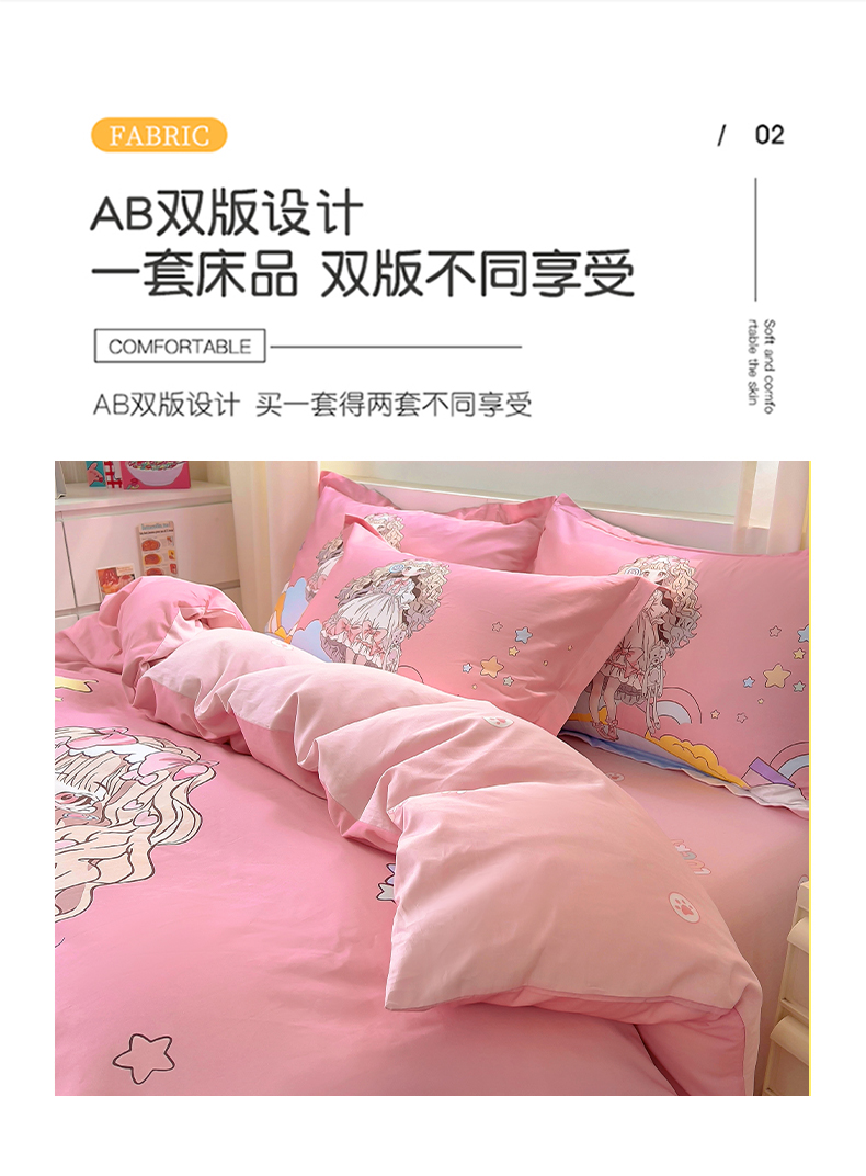 当前位置: 91家纺网 > 商品网购 > 床品套件 > 四件套 > 全棉普通四件套 > 浩诚 2025新款原创设计女孩全棉四件套 甜心女孩