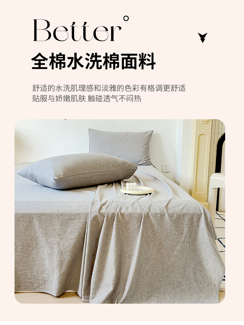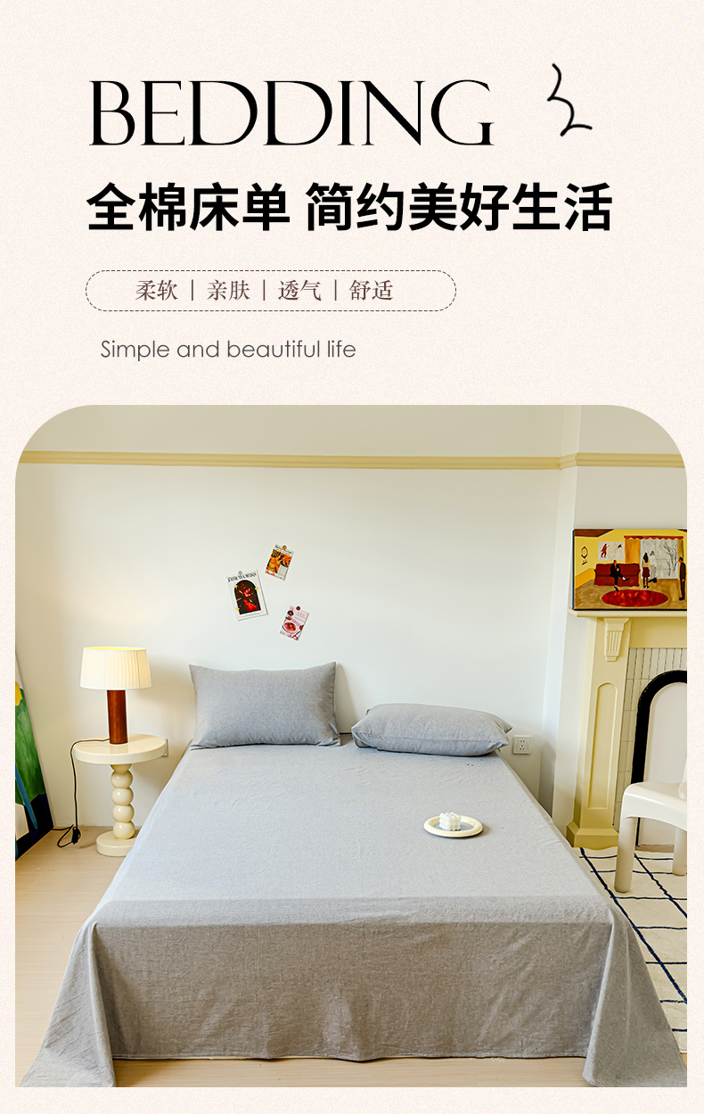 • 91家纺网 家纺一手货源 找家纺 2025新款全棉色织水洗棉床单床笠 青灰 床单款