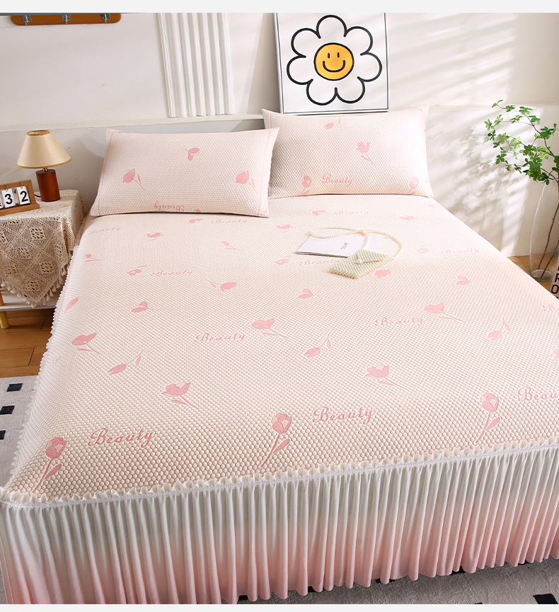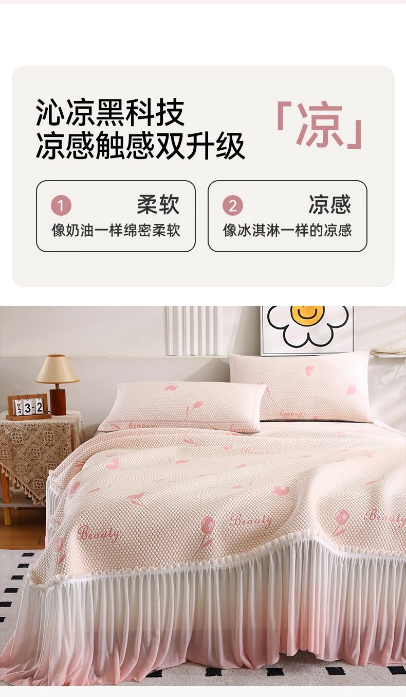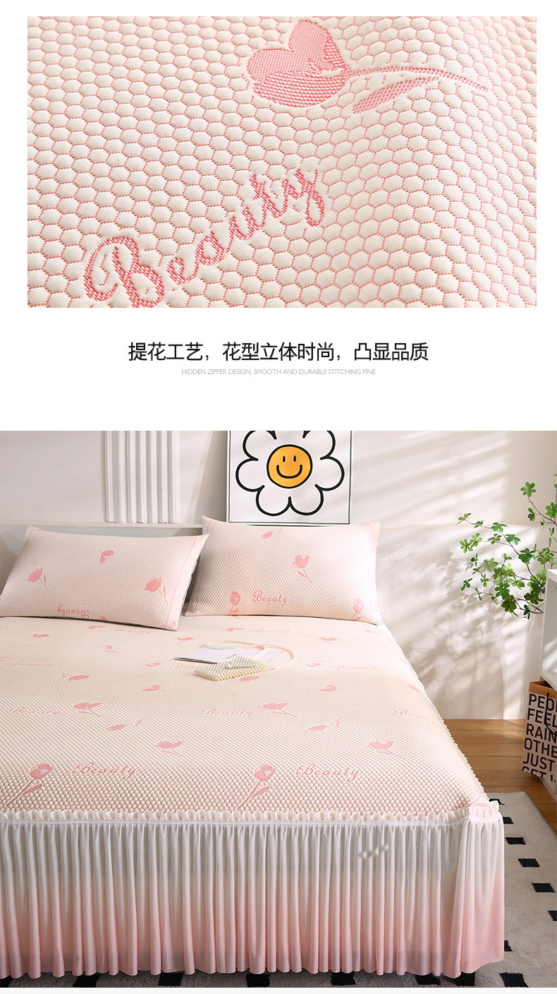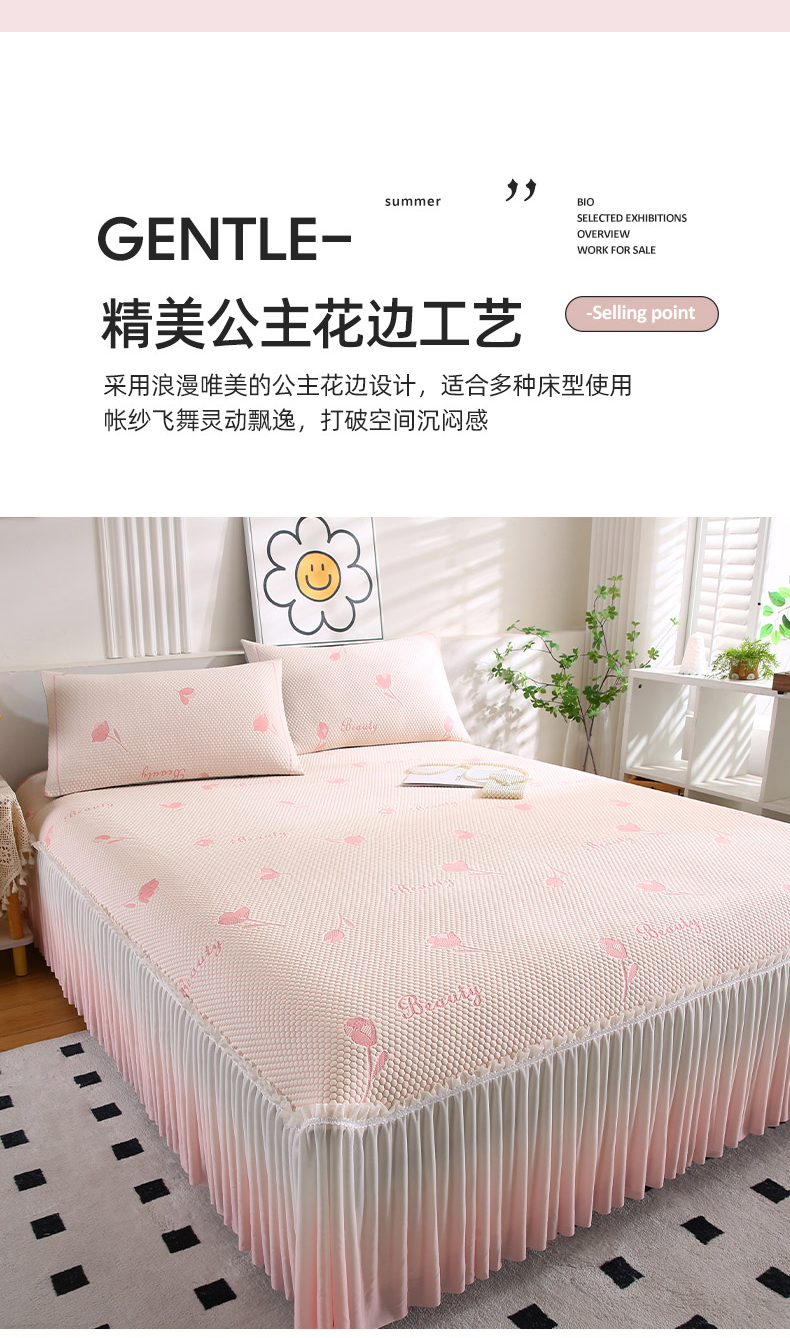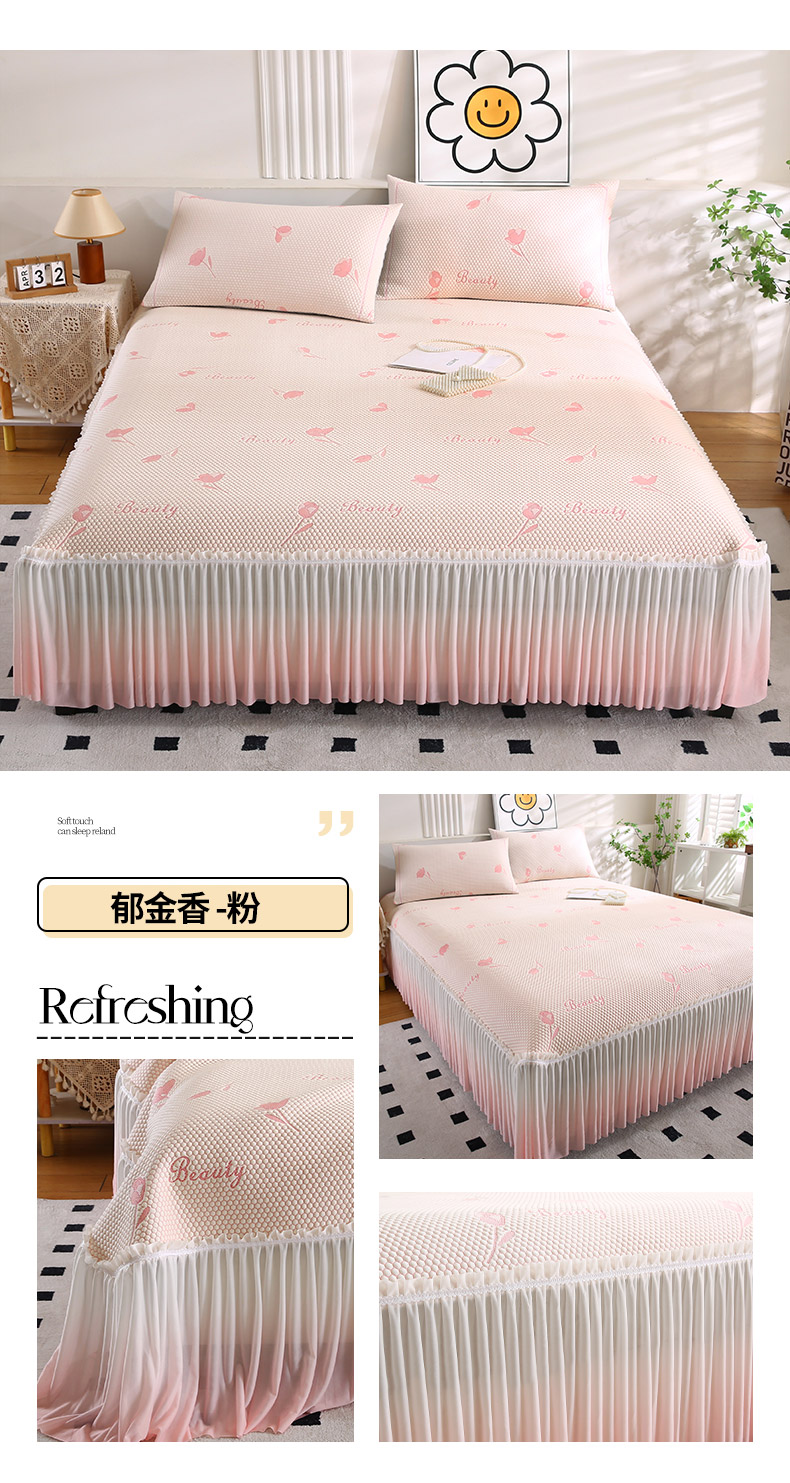 商品名称:法莱妮2025夏季新款A类真凉感丝提花三明治冰豆豆凉席床裙三件套 郁金香 -粉