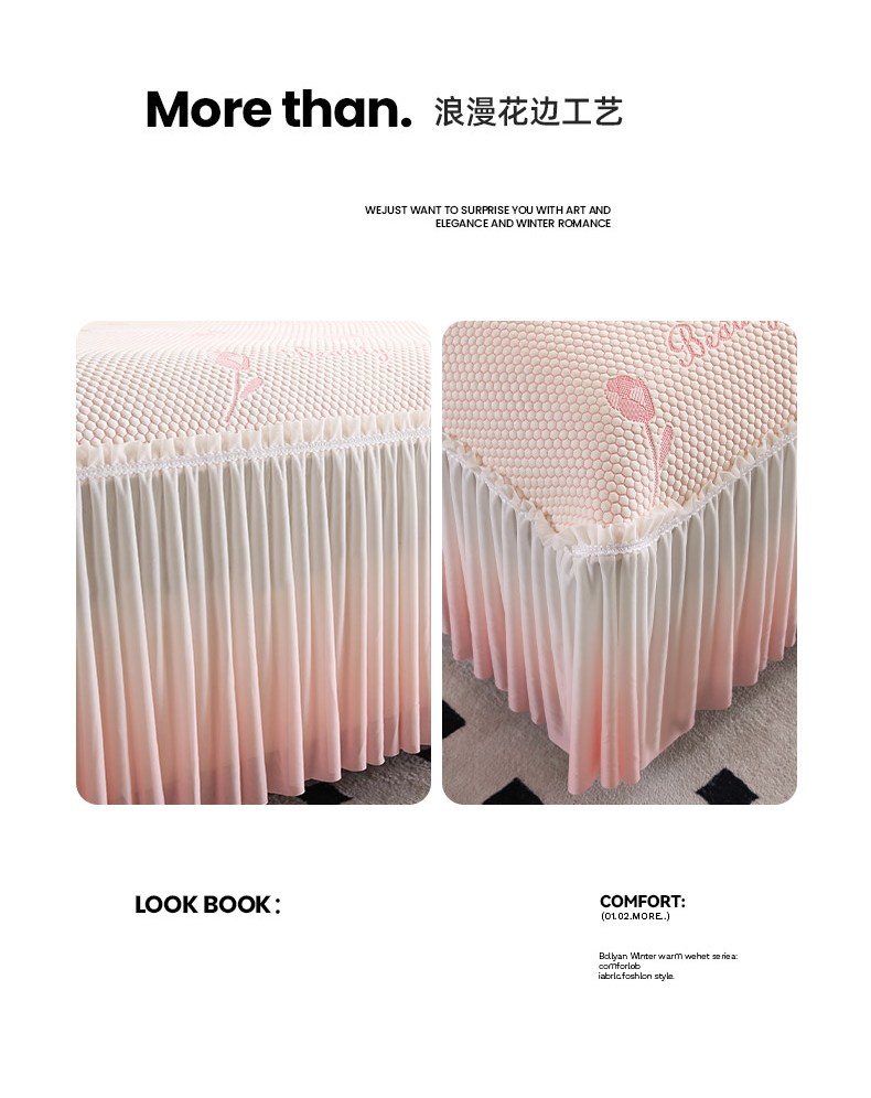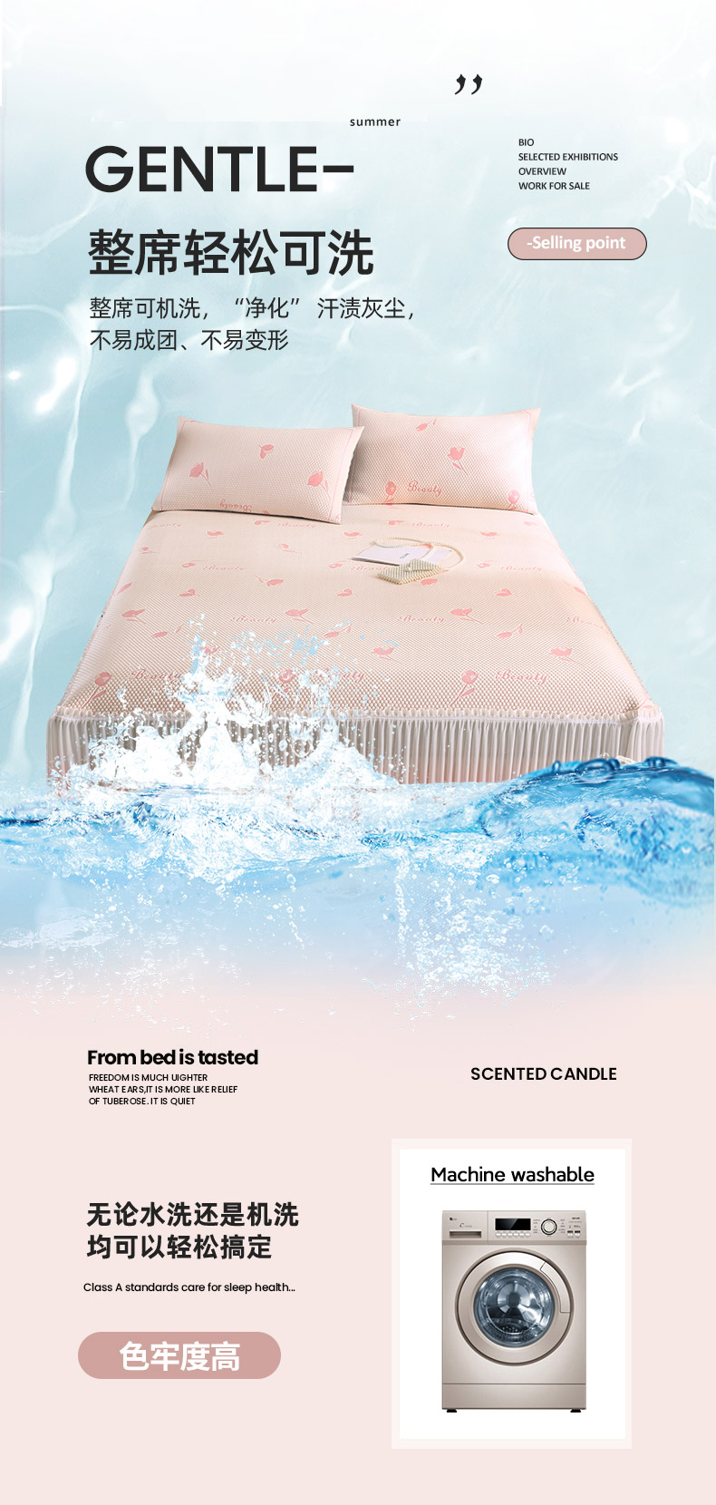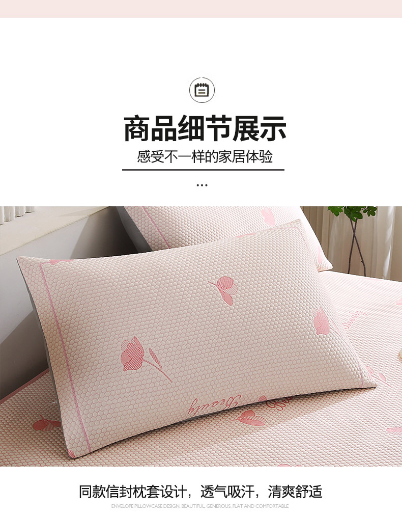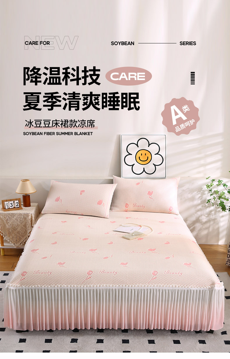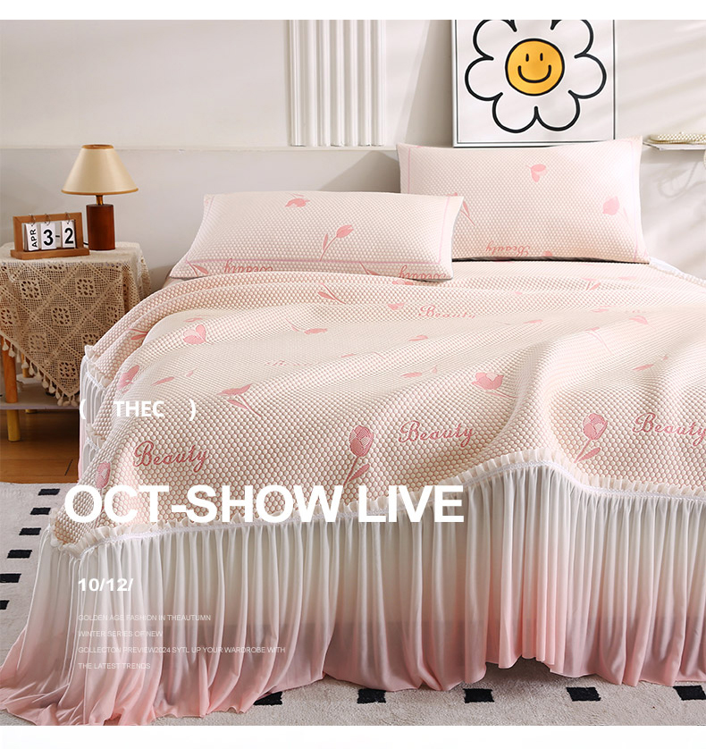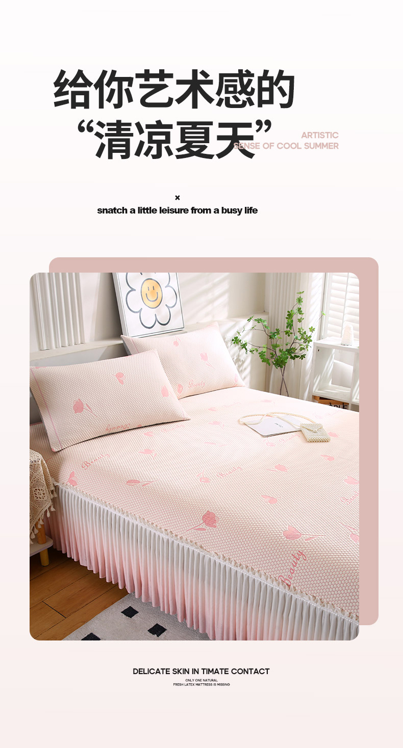 商品名称:法莱妮2025夏季新款A类真凉感丝提花三明治冰豆豆凉席床裙三件套 郁金香 -粉