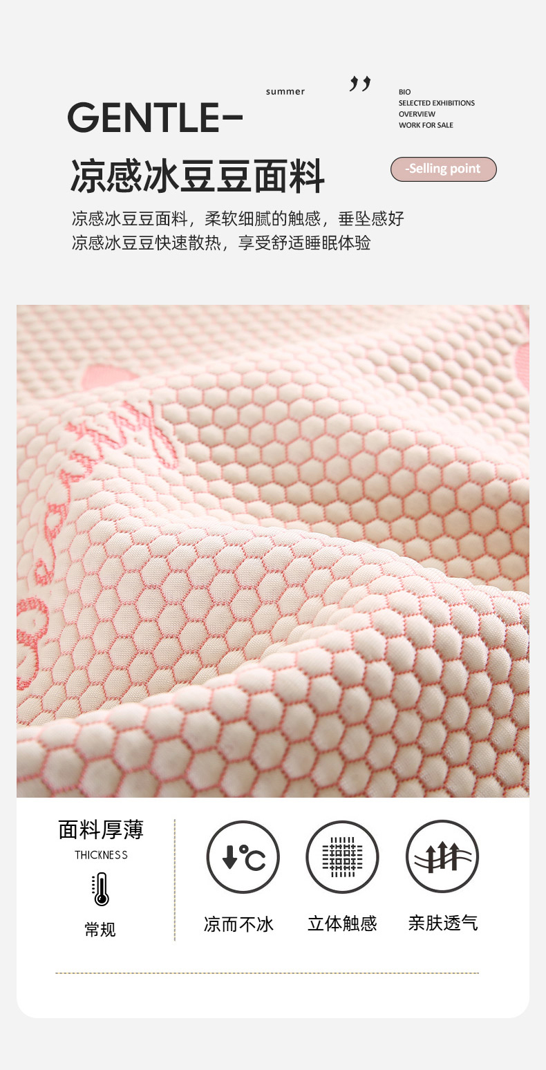 (总)法莱妮2025新款卡通三明治冰豆豆凉席,草莓-粉,复古花,蝴蝶结,玫瑰,企鹅,晚安熊,小恐龙,熊猫