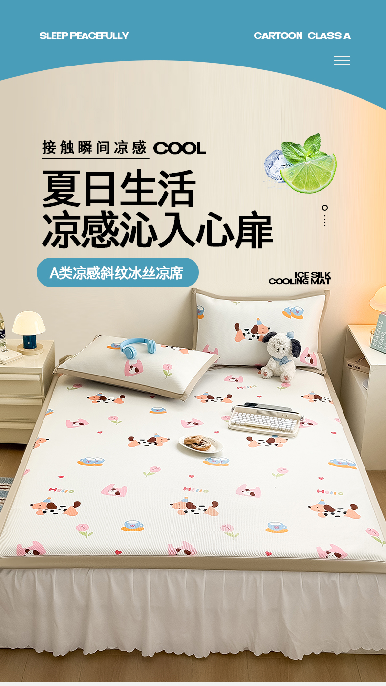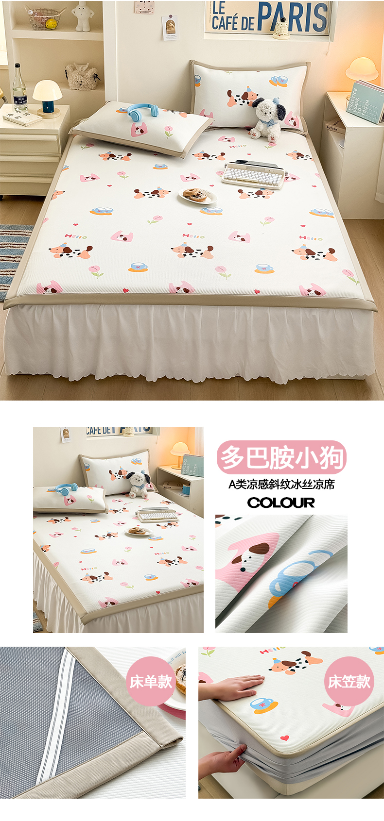 懒猫家纺 2025新款凉感斜纹床席款床笠款凉席-床笠款 多巴胺小狗