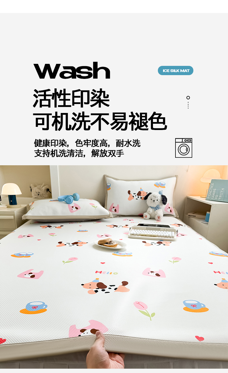 (总)懒猫家纺 2022新款学生宿舍冰丝数码印花凉席,尔雅,粉小兔,花韵,萝卜兔,清晨,手绘爱心,探索星球,甜心,小鲸鱼,小熊仔,元气兔