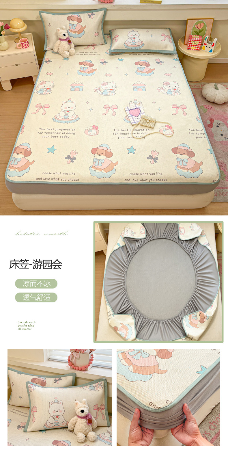 • 91家纺网 家纺一手货源 找家纺 慕澄家纺 2025新款小清新印花真冰藤系列凉席床笠款 床笠-丛林