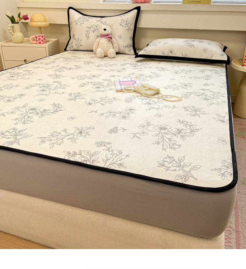 • 91家纺网 家纺一手货源 找家纺 慕澄家纺 2025新款小清新印花真冰藤系列凉席床笠款 床笠-趣乐园