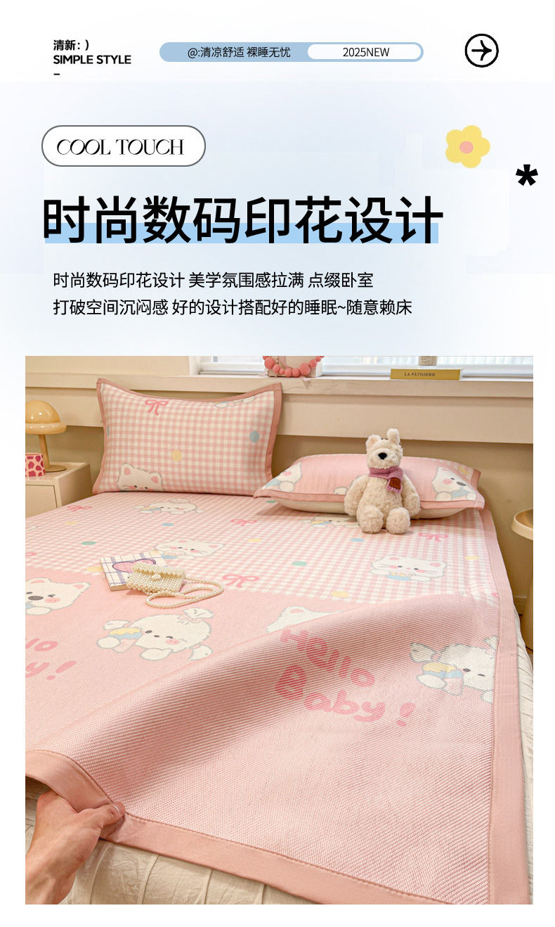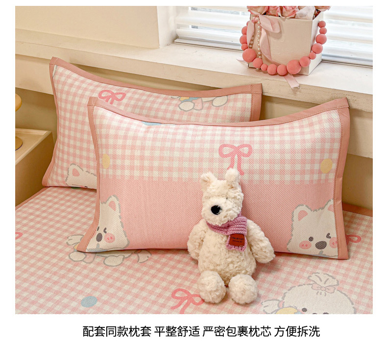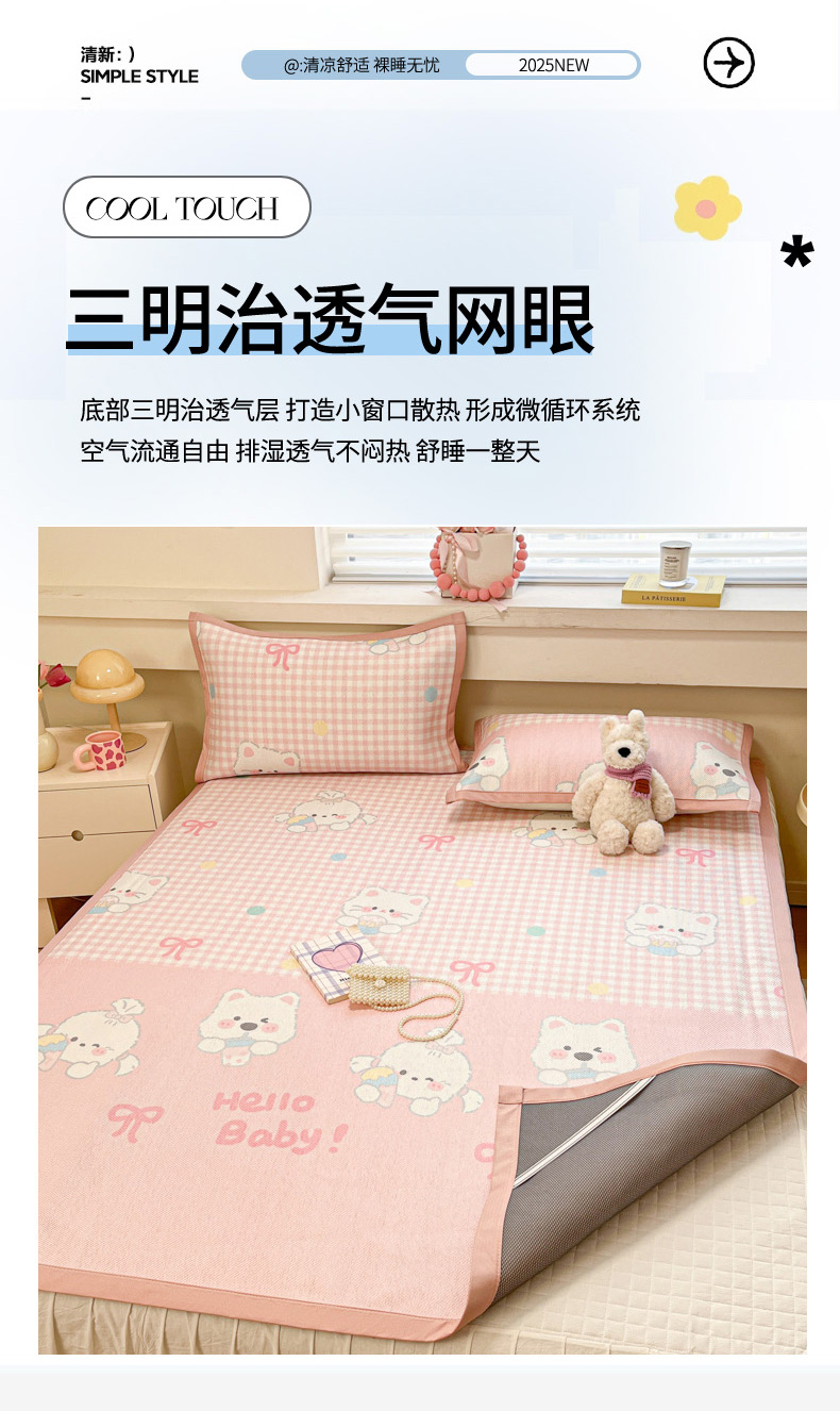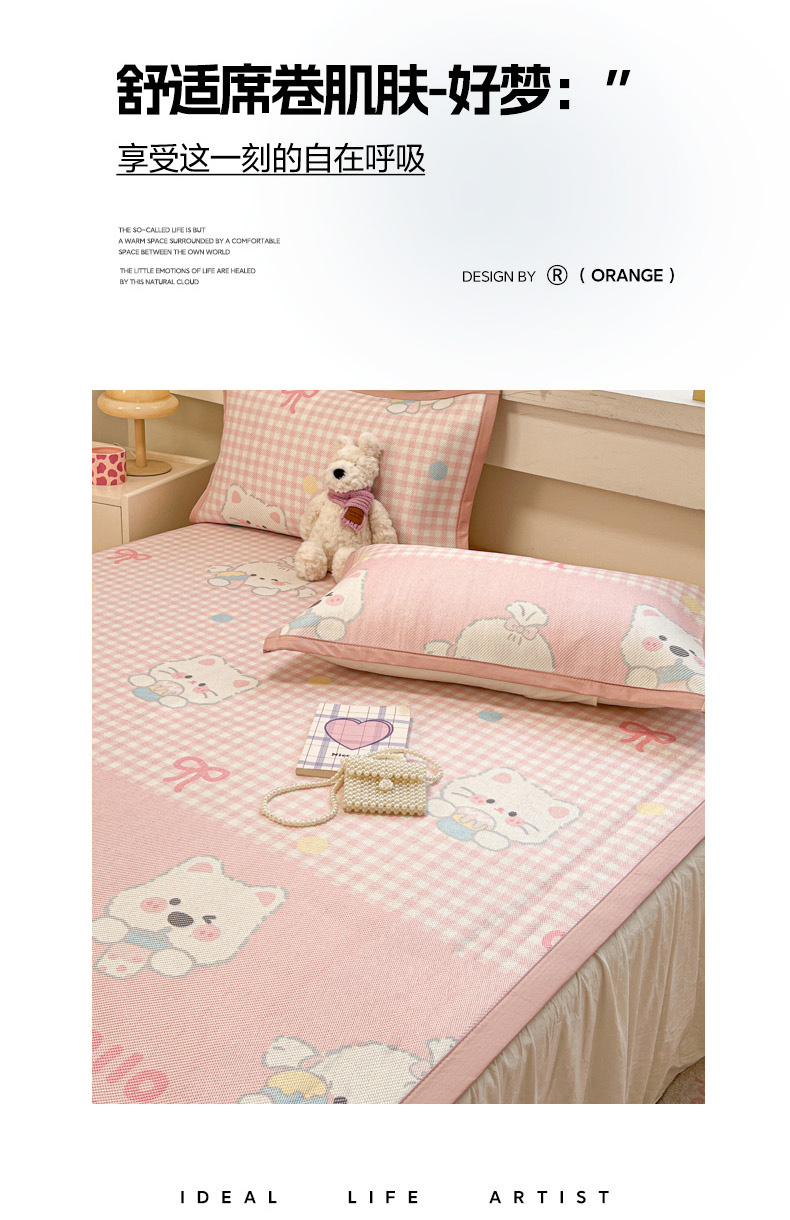 慕澄家纺 2025新款小清新印花真冰藤系列凉席床席款 床席-格子奶芙芙