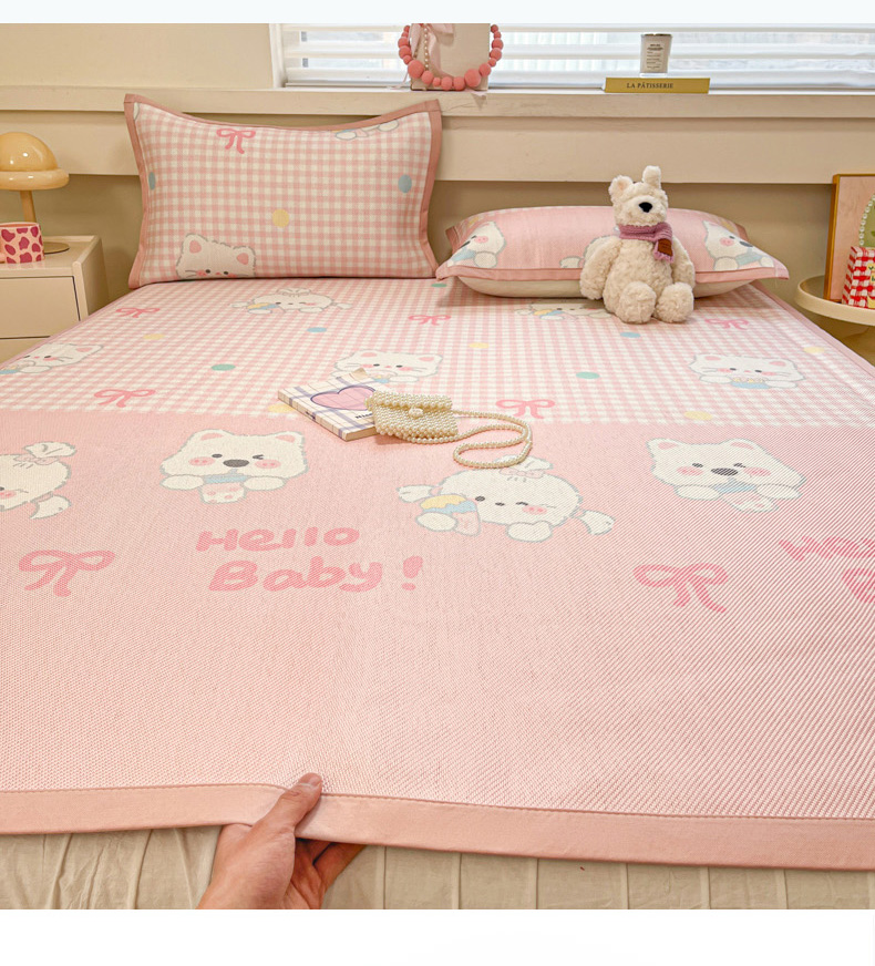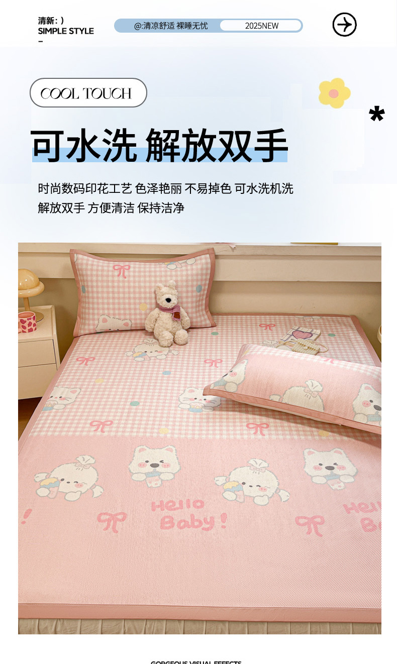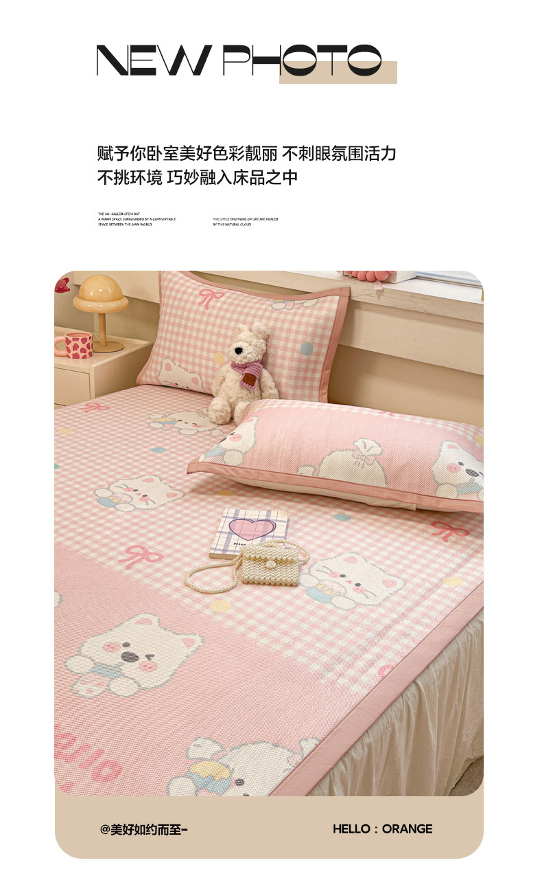 慕澄家纺 2025新款小清新印花真冰藤系列凉席床席款 床席-格子奶芙芙