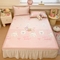 (总)慕澄家纺 2022新款华夫格雪纺花边四件套,湖水绿,魅惑紫,奶白色,奶黄色,浅豆沙,情调灰,天空蓝,樱花粉