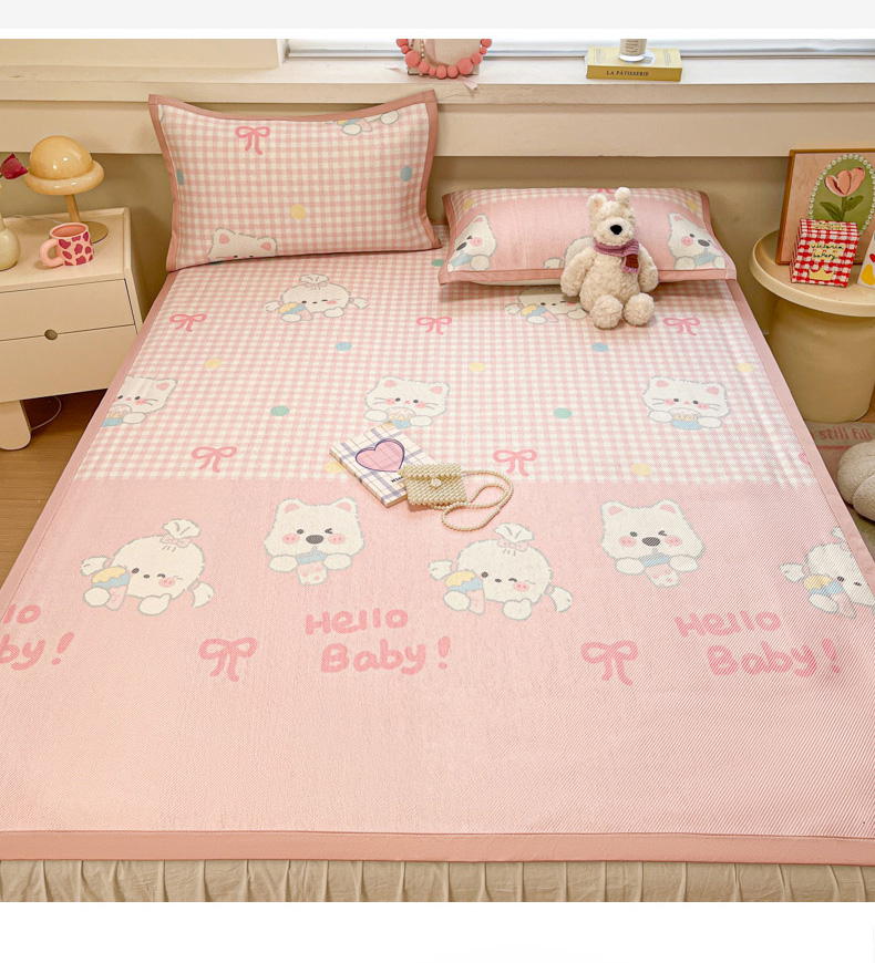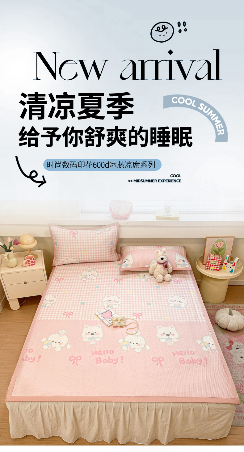 商品名称:慕澄家纺 2025新款小清新印花真冰藤系列凉席床席款 床席-格子奶芙芙