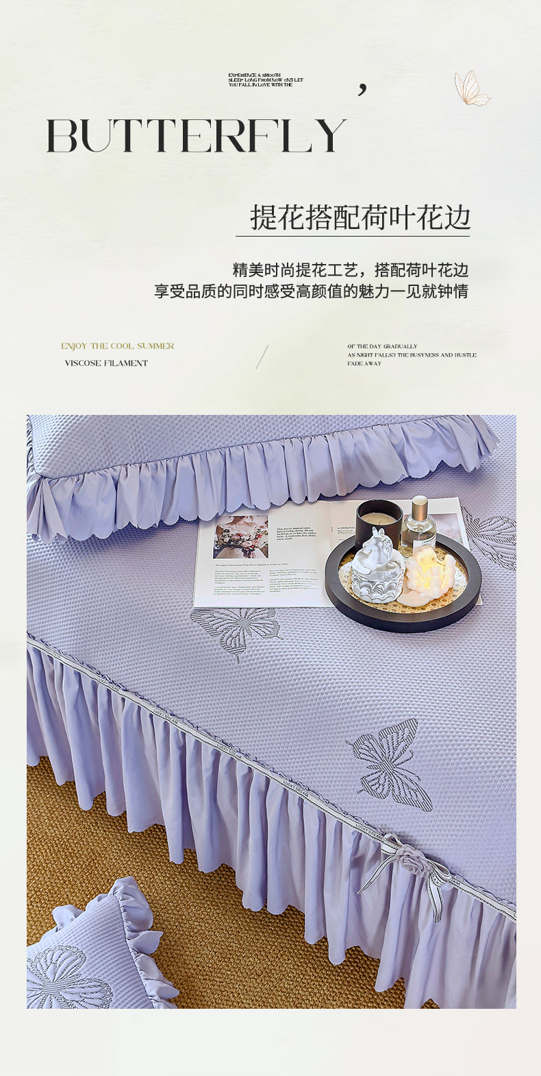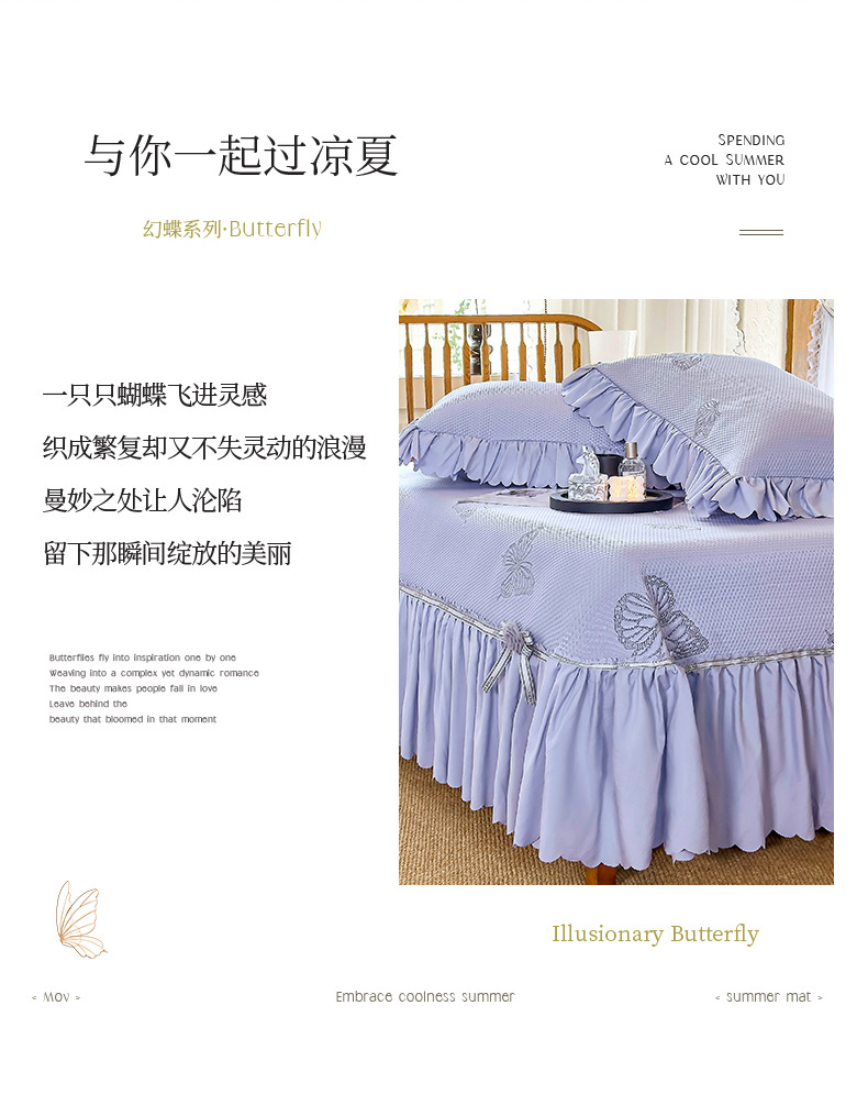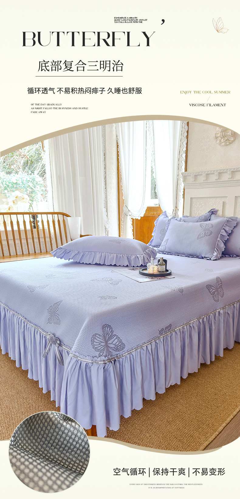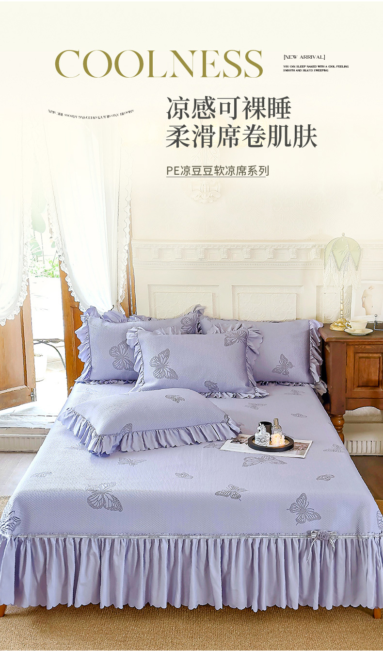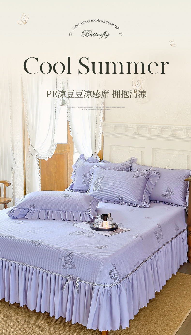 商品名称:乐朵家居 2025新款 幻蝶(可配同色系空调被)PE凉席三件套(复合) 控价218 兰紫