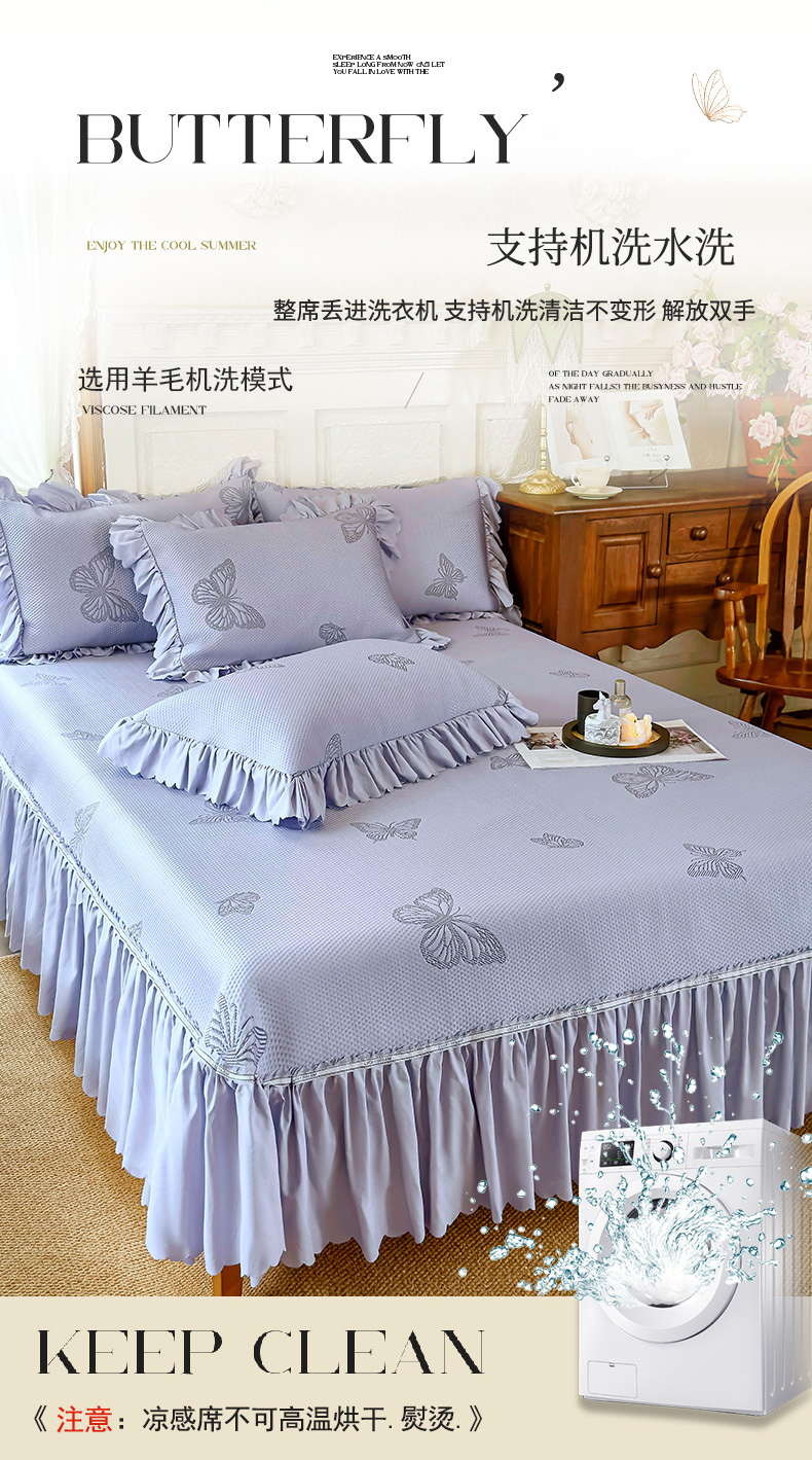 (总)乐朵家居 2025新款洛丽塔系列A类凉感席三件套,洛丽塔-豆沙,洛丽塔-蓝,洛丽塔-绿,洛丽塔-奶白,洛丽塔-玉