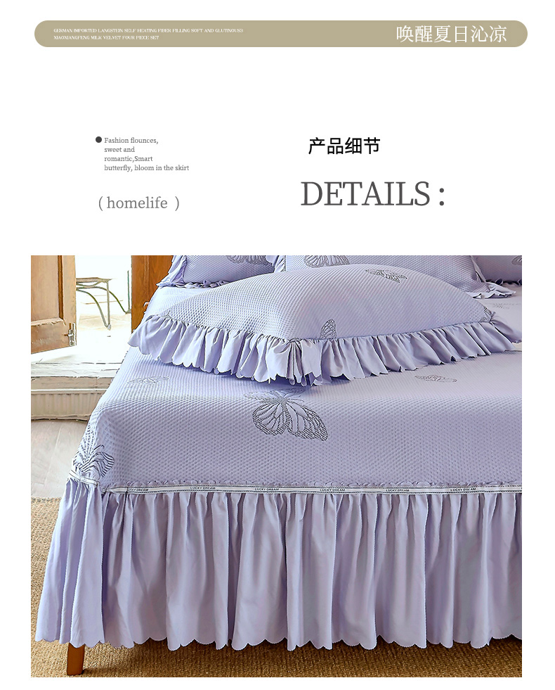 (总)乐朵家居 法兰花都 牛奶绒 床单款夹棉床盖四件套(床单控价288床盖控价328),白,粉玉,丁香紫,抹茶绿