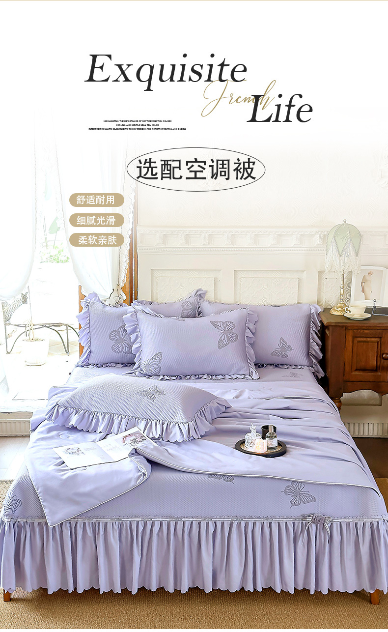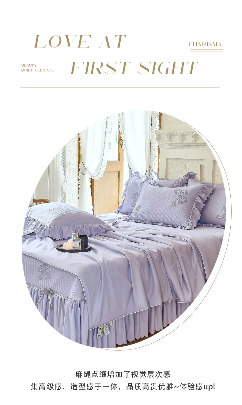 (总)乐朵家居 2025新款 25-1 芯语 蕾丝床裙,豆沙,灰,卡其,绿,米,紫