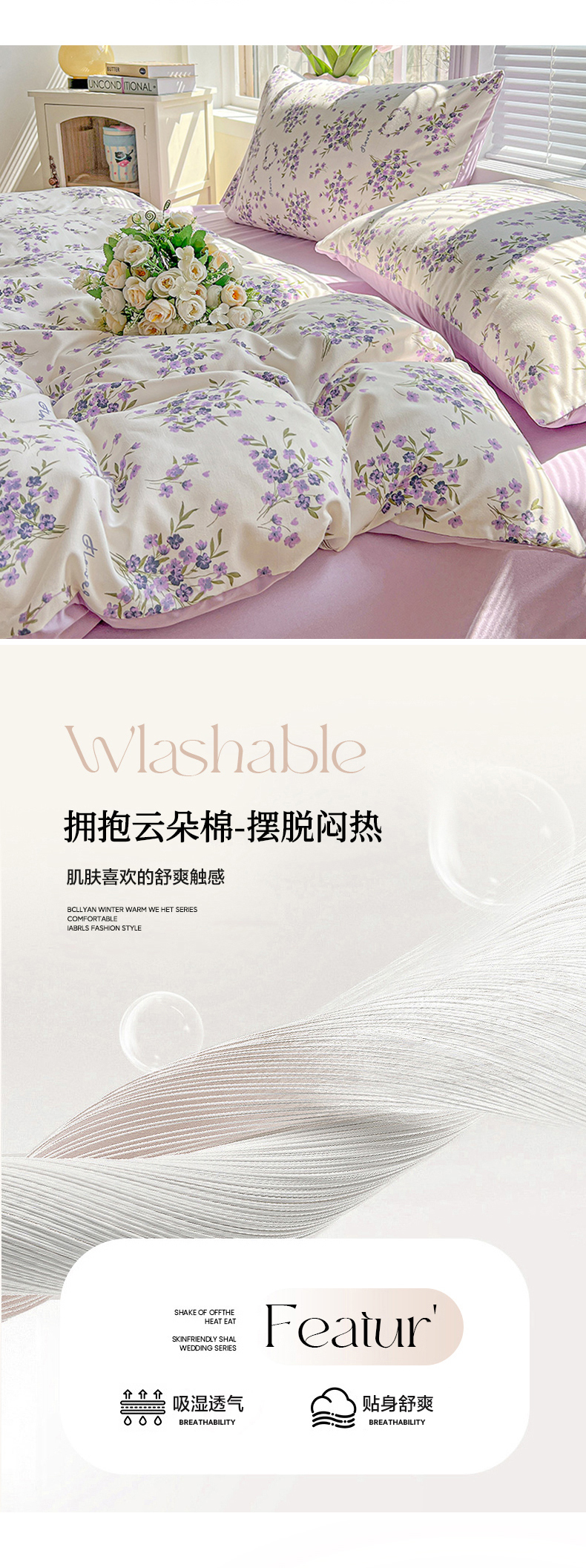 (总)2025水洗棉双层纱简约风ins风小碎花被套床单款床笠款三四件套-单被套