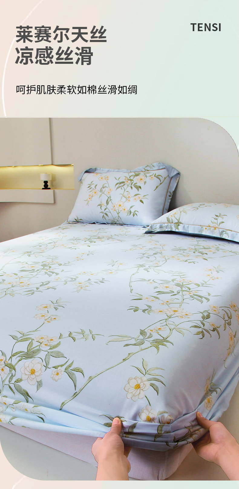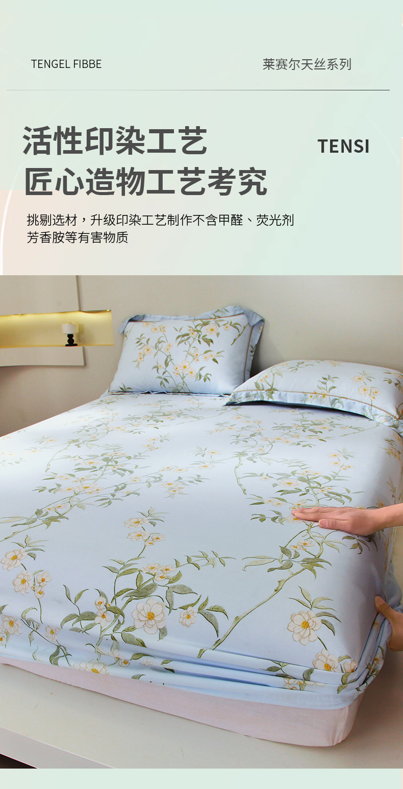 (总)春皖家纺 2025春夏新款A类莱赛尔纤维印花A版单床笠 床笠单件-风格二