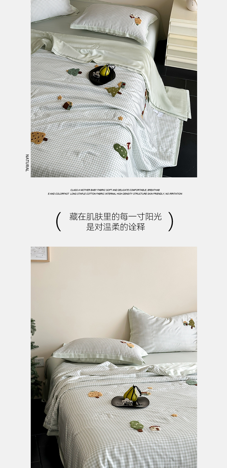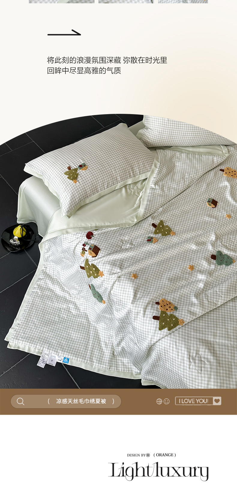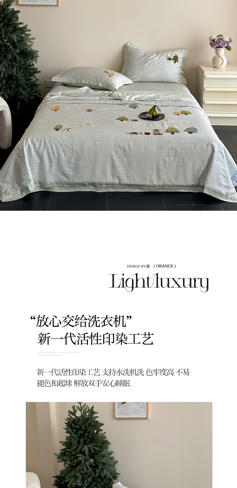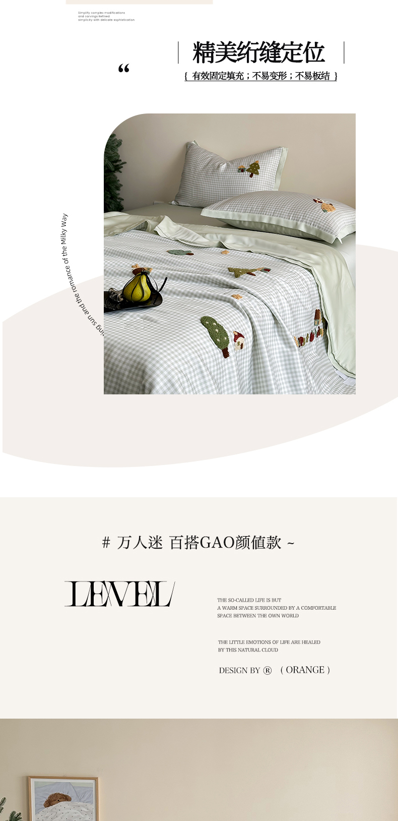 • 91家纺网 家纺一手货源 找家纺 FORTWO家纺原创设计(FOR TWO家纺) 2025新款60S兰精天丝断角款格子毛巾绣夏被夏凉被空调被 星星树