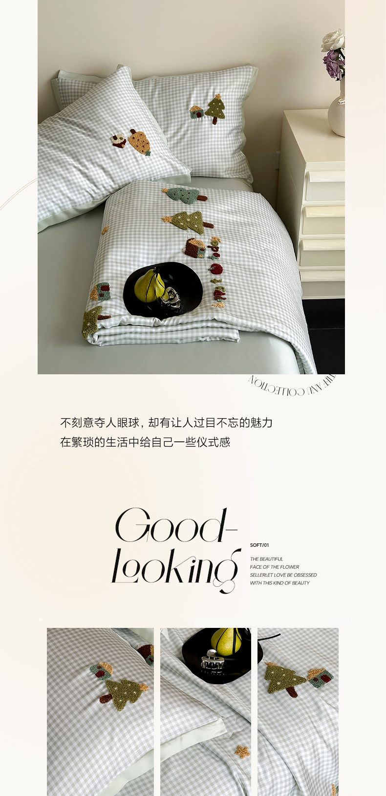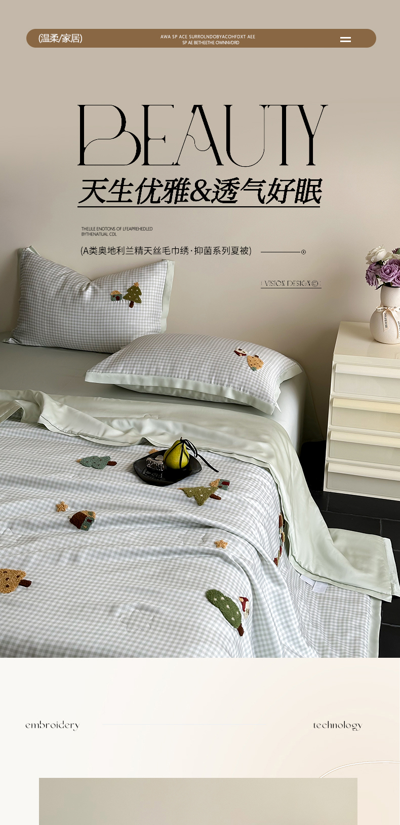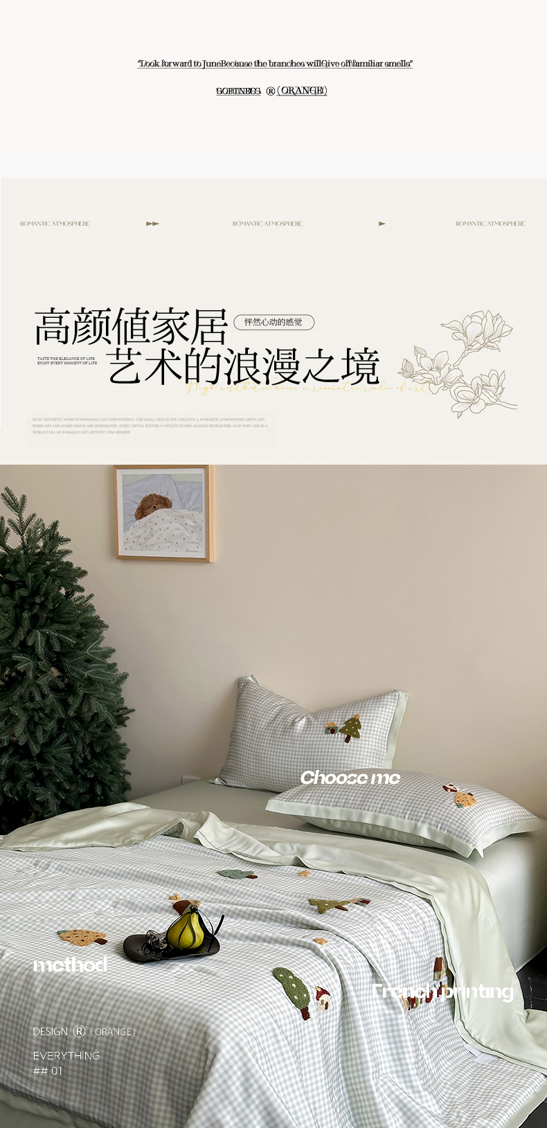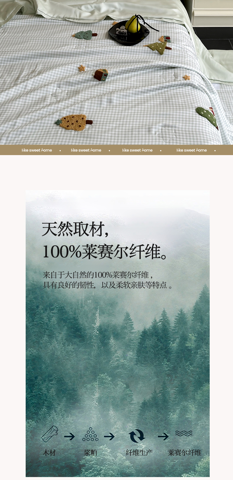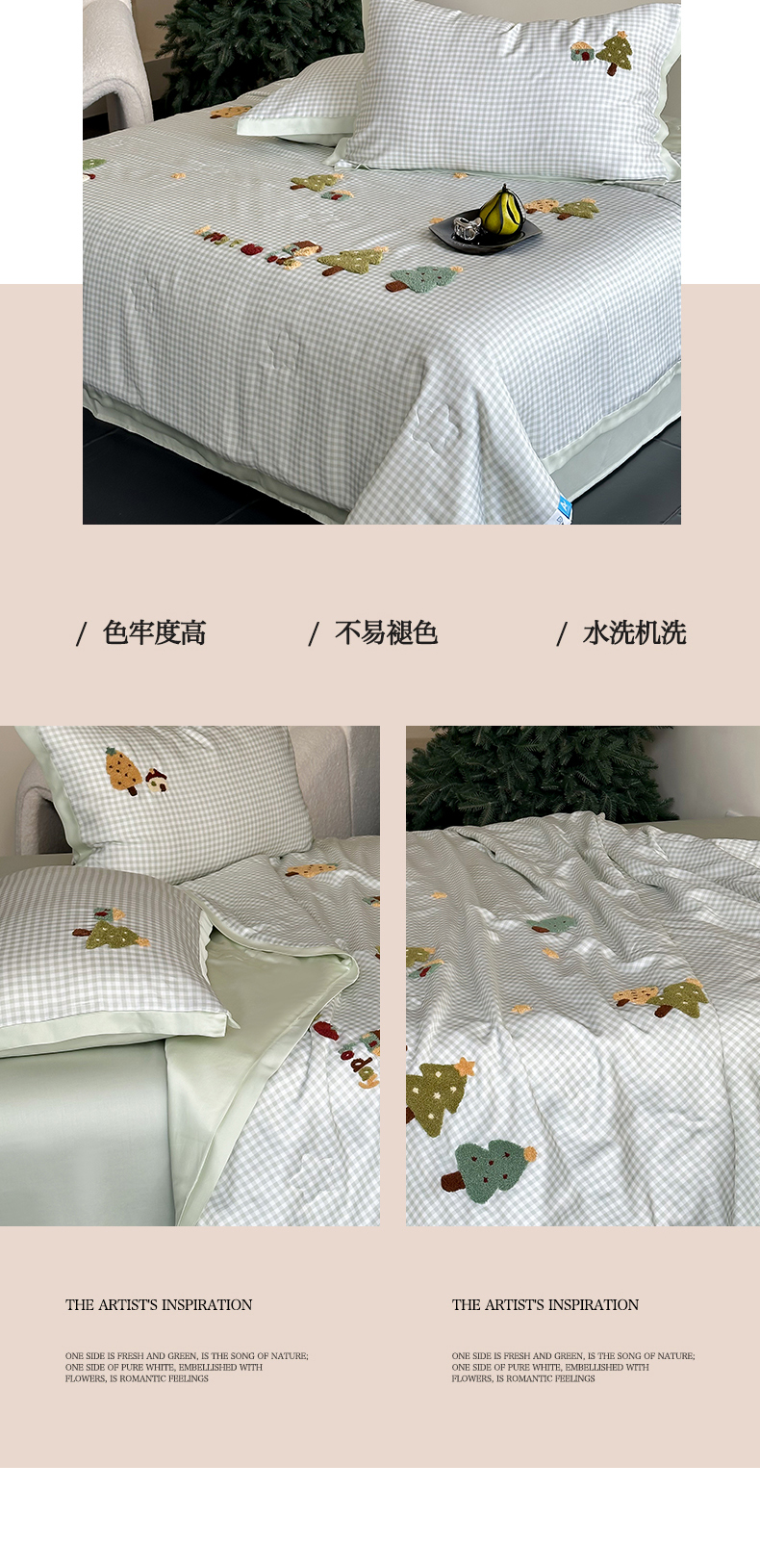 • 91家纺网 家纺一手货源 找家纺 FORTWO家纺原创设计(FOR TWO家纺) 2025新款60S兰精天丝断角款格子毛巾绣夏被夏凉被空调被 星星树