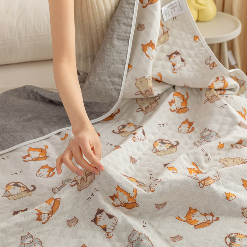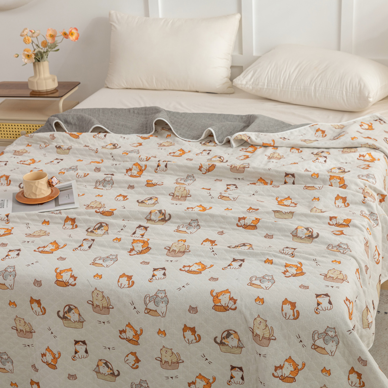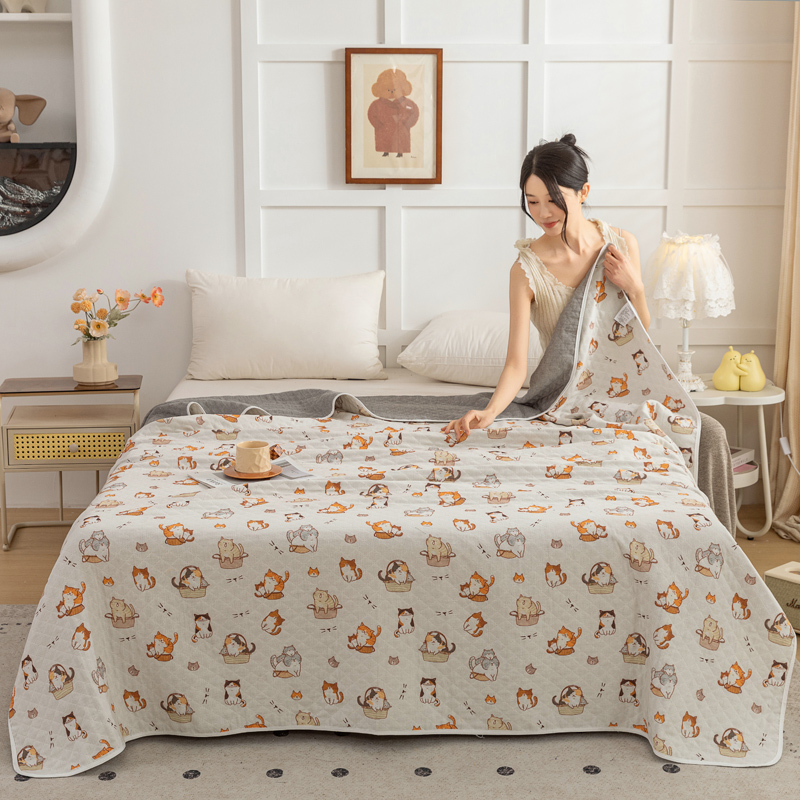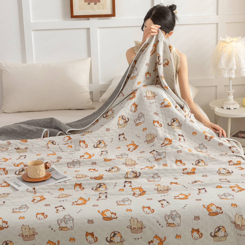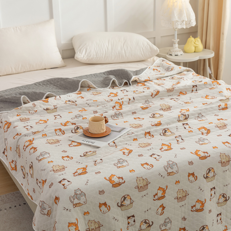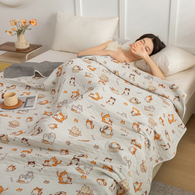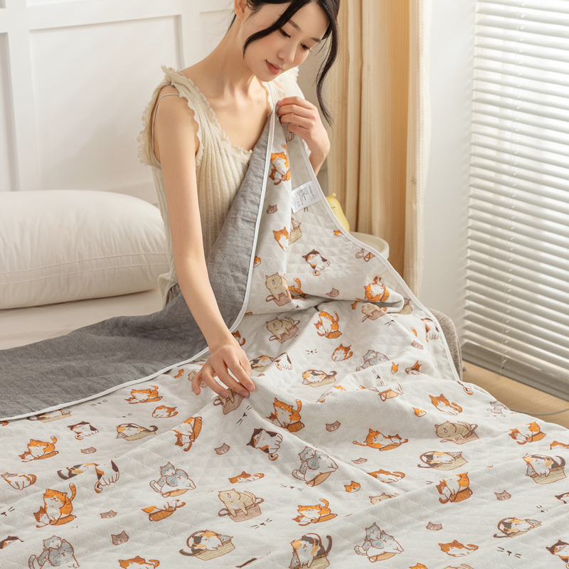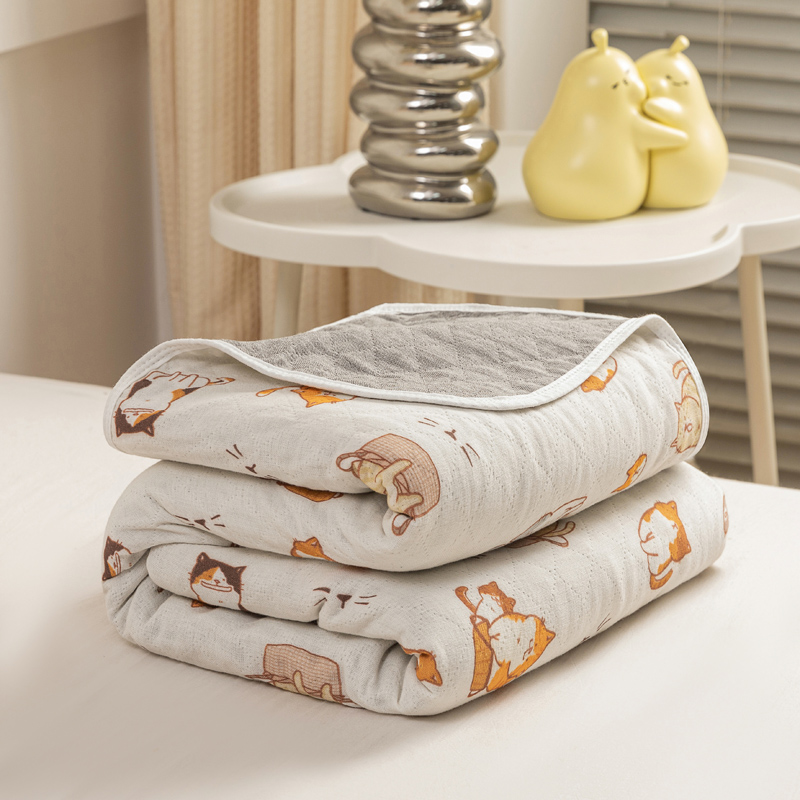 (总)乐家毛巾被(工厂自产自销) 2025新款A类全棉六层纱印花毛巾被,白色棉朵,彩蝶,彩虹小熊,动物派对,多彩南瓜,格子花花,黄油小熊,简笔森林,卡通狗狗,绿色茶花,莫比乌斯环,水墨花开,兔子小狗,吴丹花开,向日葵,尤加利,油画雏菊,happy腊肠狗