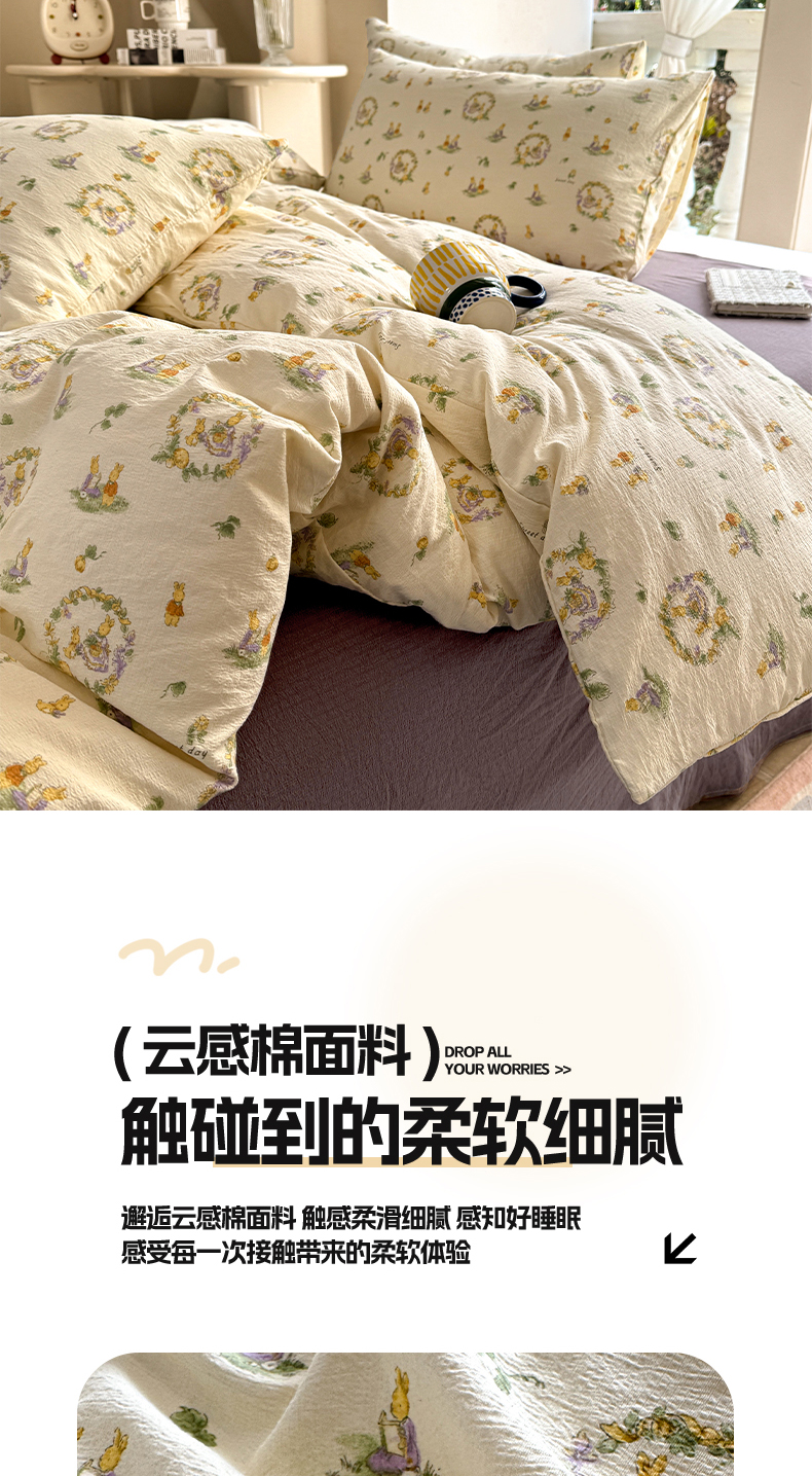 当前位置: 91家纺网 > 商品网购 > 床品套件 > 四件套 > 双层纱四件套 > 韩巢家纺 2025新款云感提花双层纱单被套被套单件单品被套-(提供卖家秀) 兔子的欢喜
