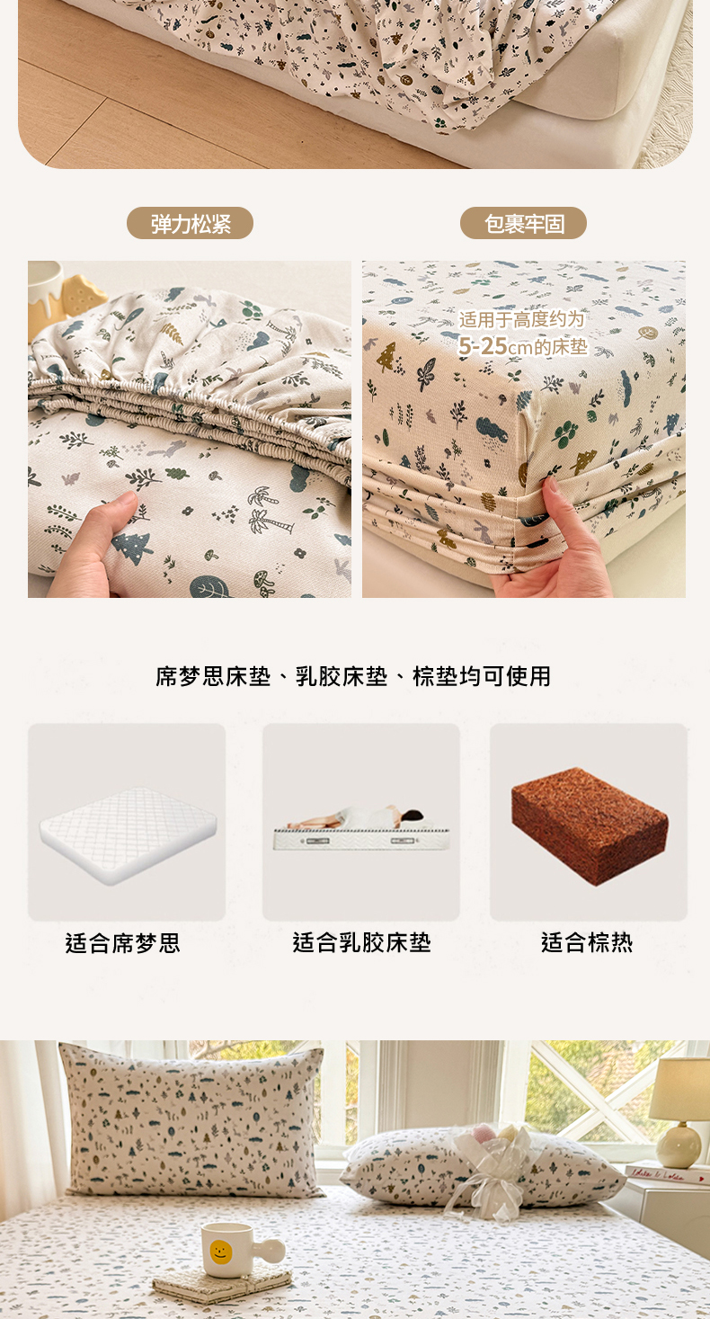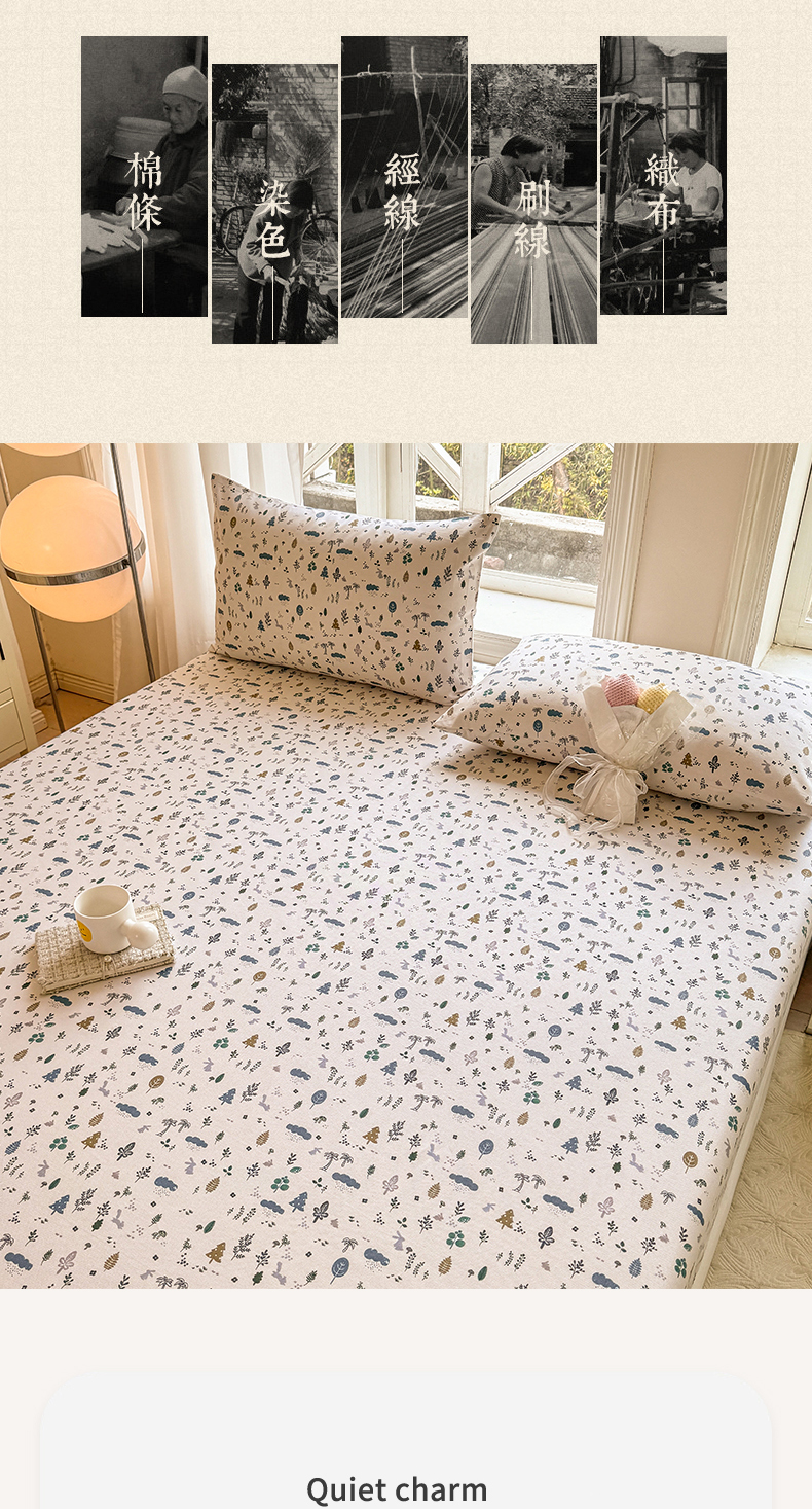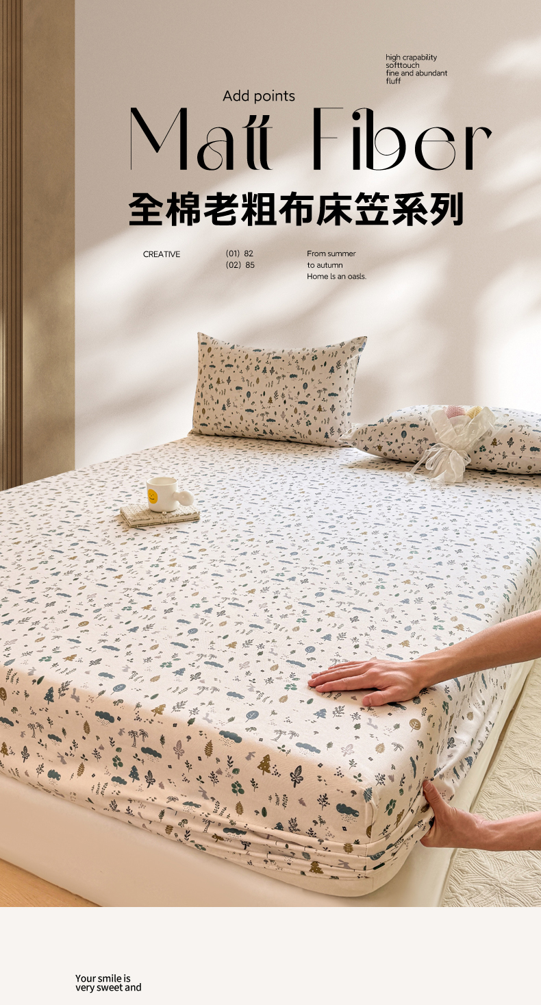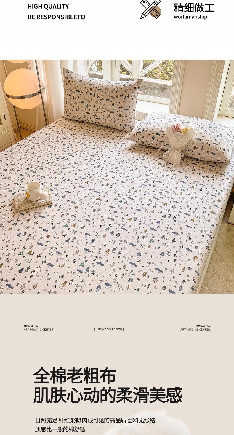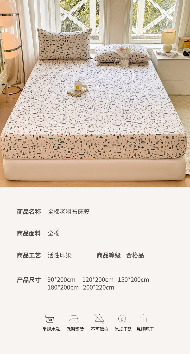 • 91家纺网 家纺一手货源 找家纺 韩巢家纺 2025新款全棉纯棉田园小清新花卉老粗布席子凉席夏季凉席席子床笠款床套 丛林