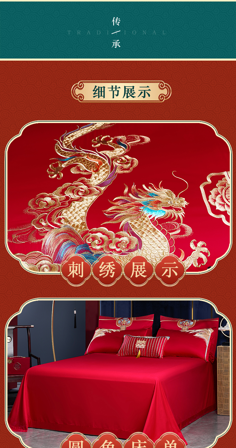 (总)芊囍纺 2025新款双面长绒棉高端婚庆提花重工刺绣四件套多件套系列,龙凤情缘,龙翔风喜
