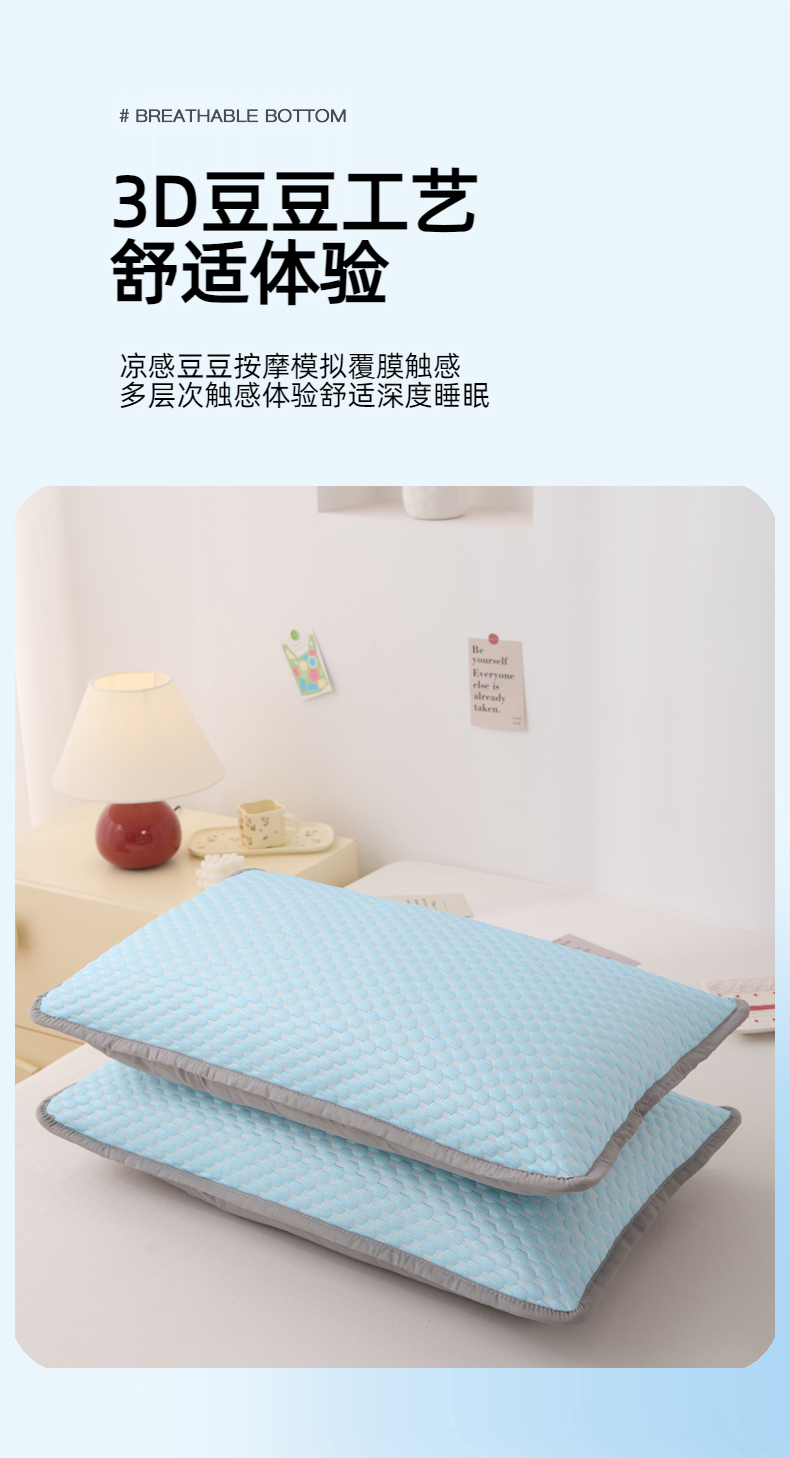 商品名称:大熊枕芯 2025新款冰豆豆凉感隔脏枕套 冰豆豆枕套-蓝