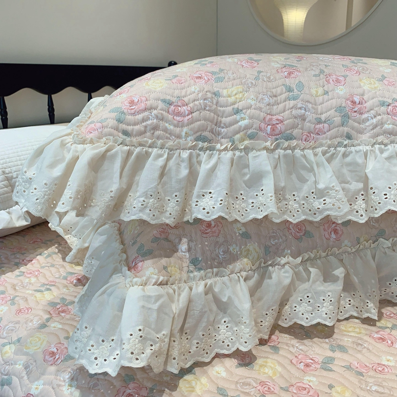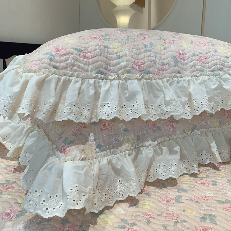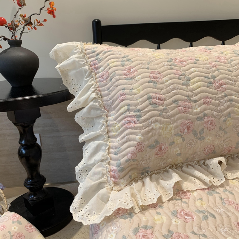 商品名称:奈萝家纺 2025春夏新款全棉纯棉蕾丝花边款床盖三件套 蔷薇