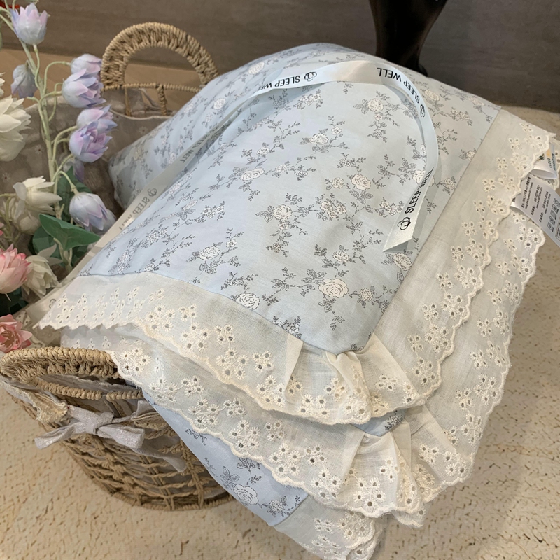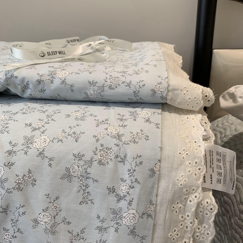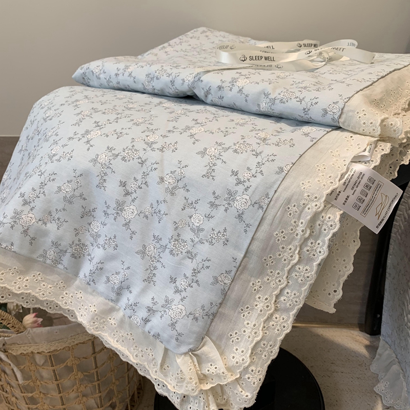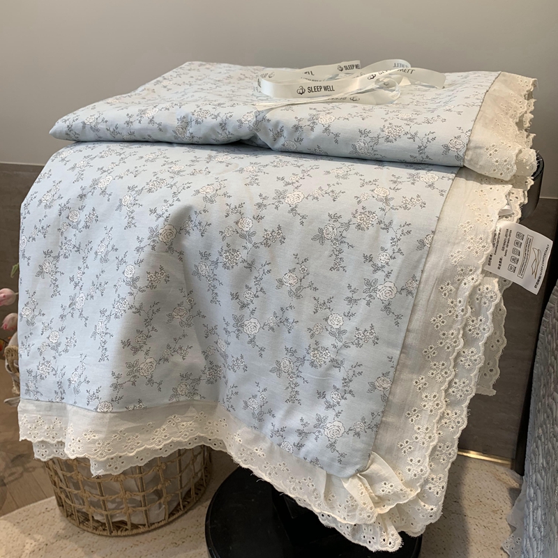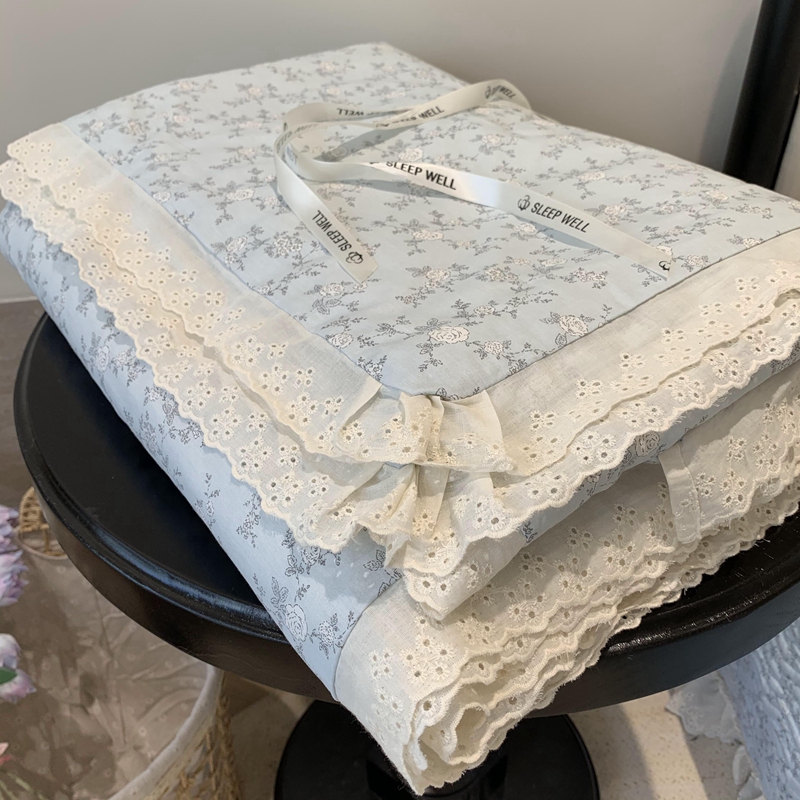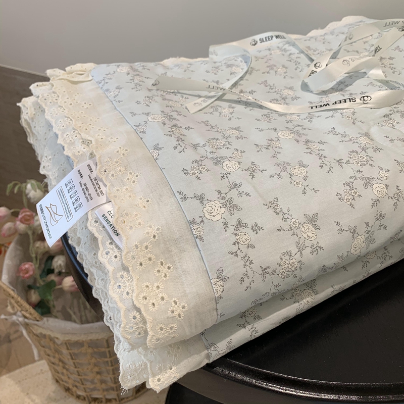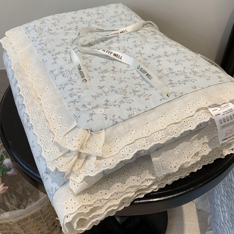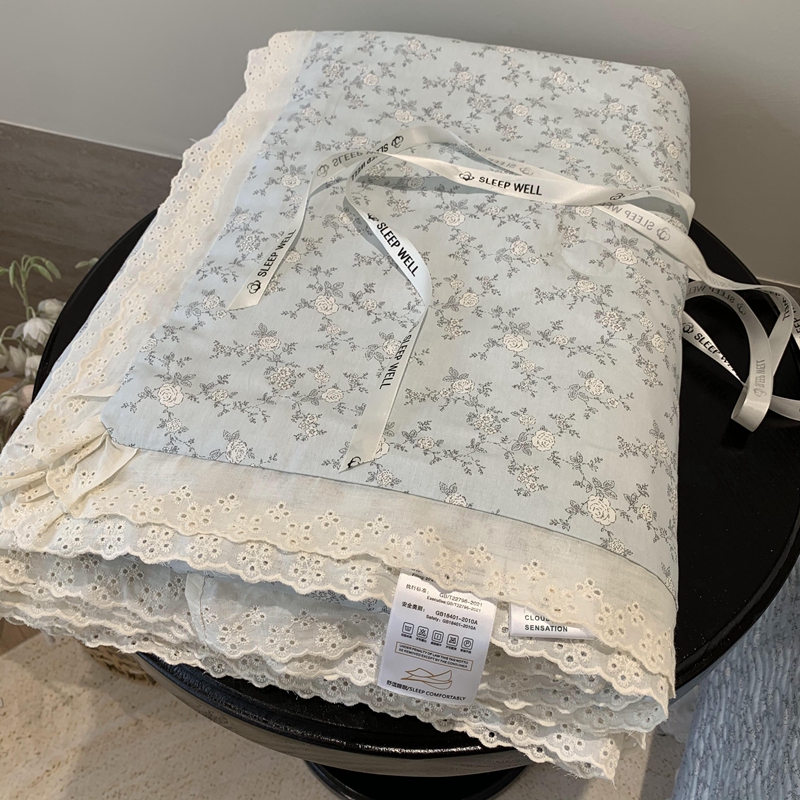 奈萝家纺 2025春夏新款全棉纯棉蕾丝花边款夏被夏凉被空调被 夏蓝