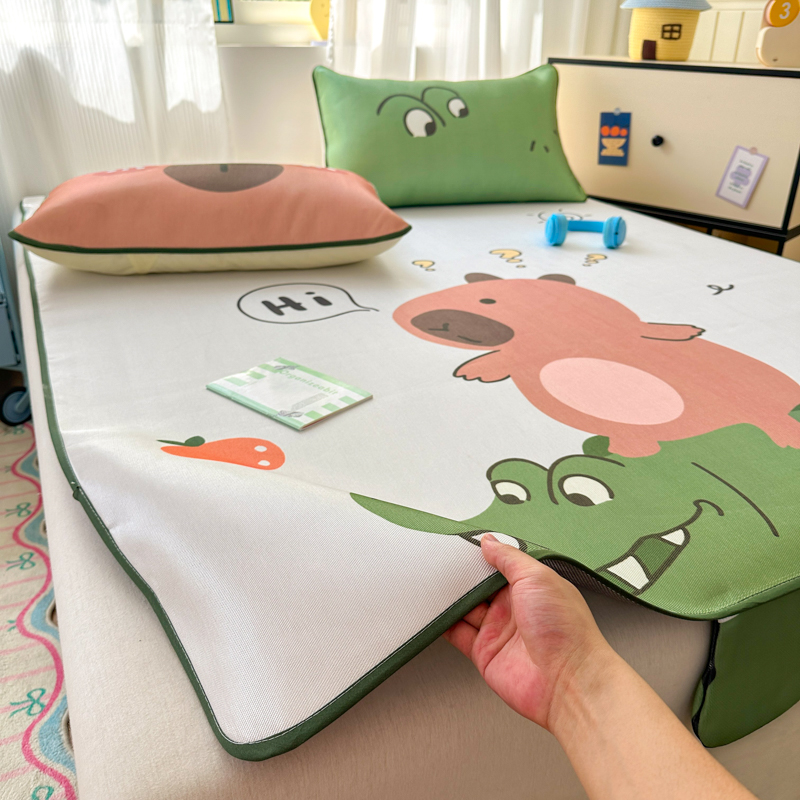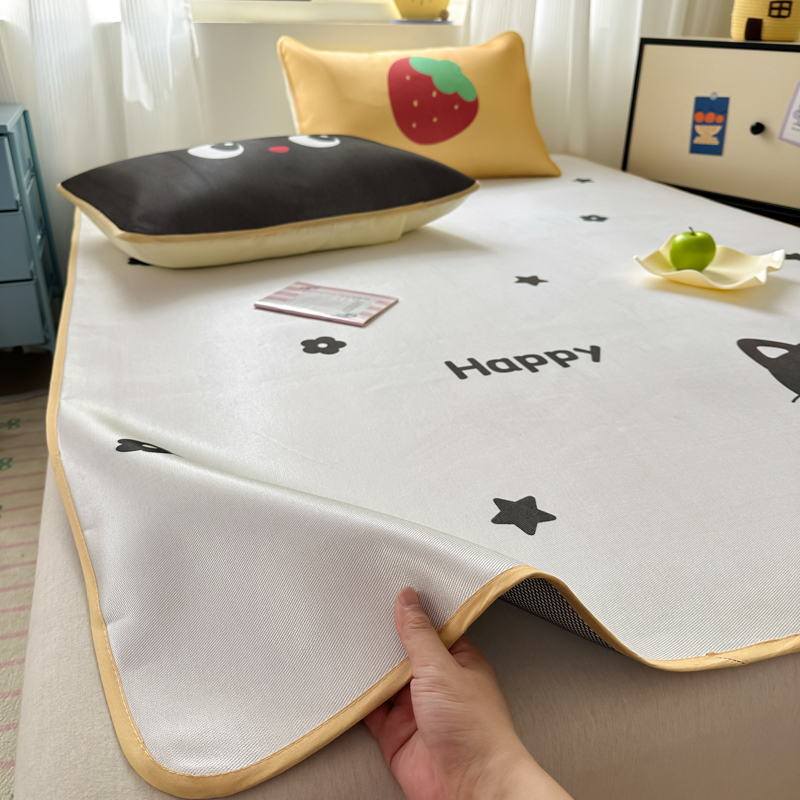 一霖家纺 2025新款大版300D冰藤席席子凉席三件套 趣味朋友