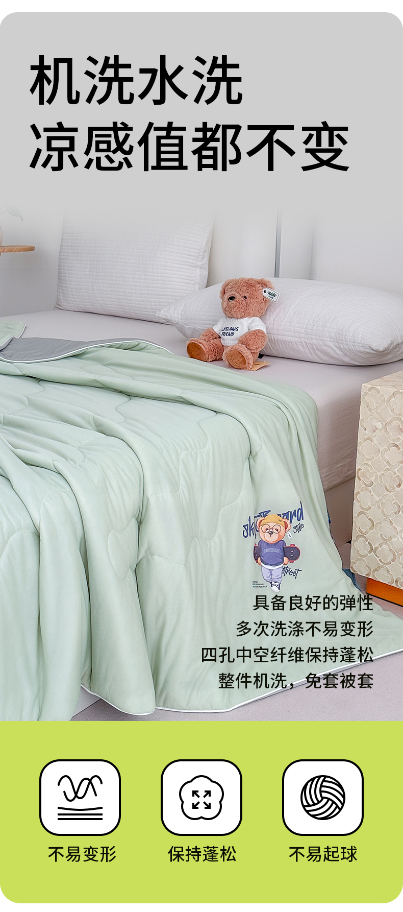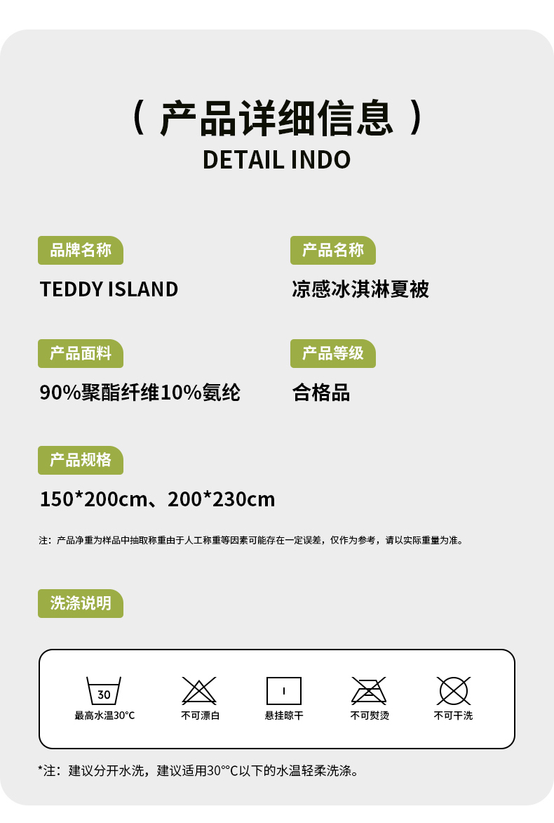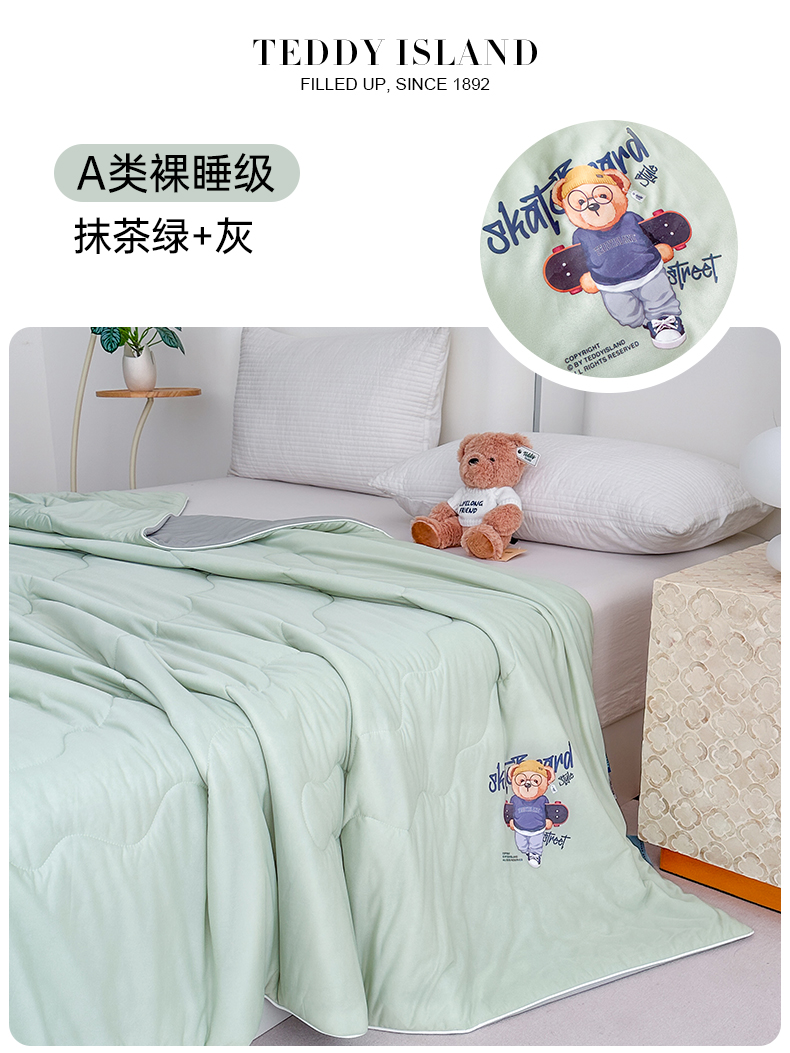 商品名称:泰迪爱兰Teddy ISLAND 2026新款冰淇淋凉感夏被 抹茶绿+灰