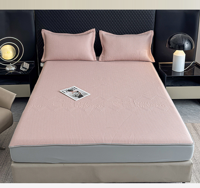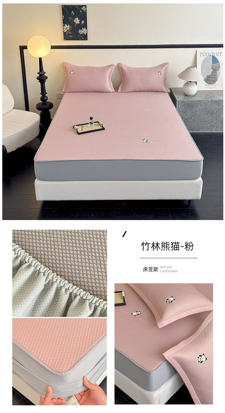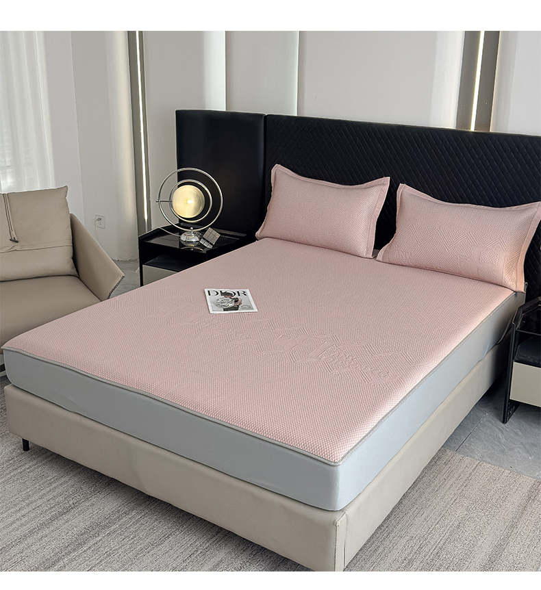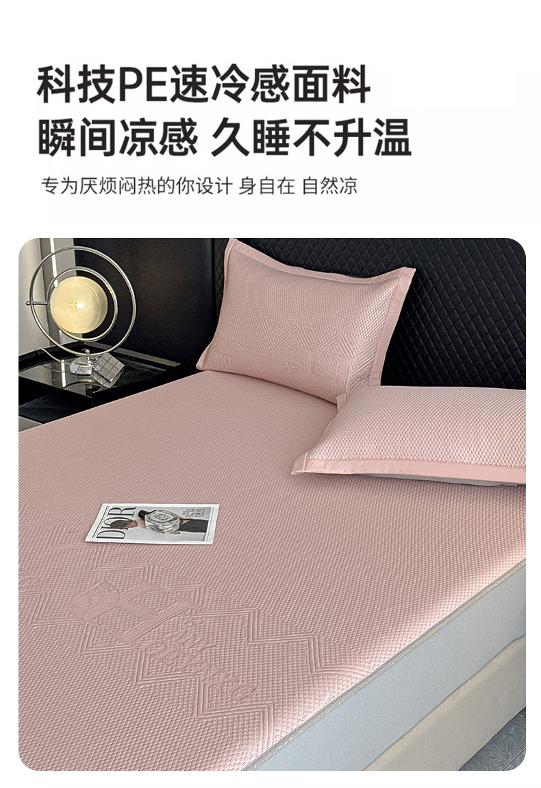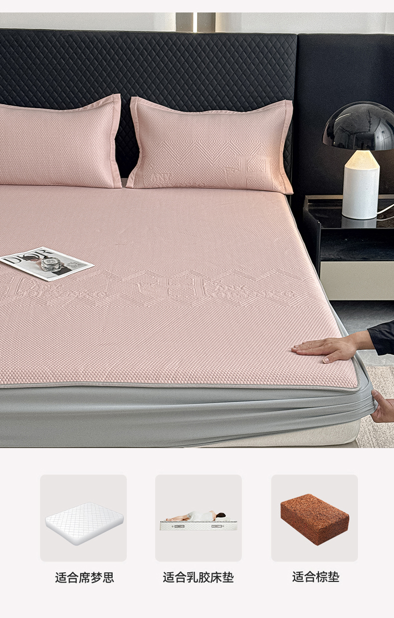 瑞兴纺 2025新款高分子PE软凉席绣花款床笠款 床笠款-路易威-粉