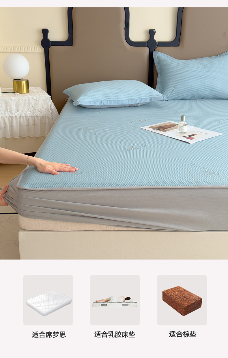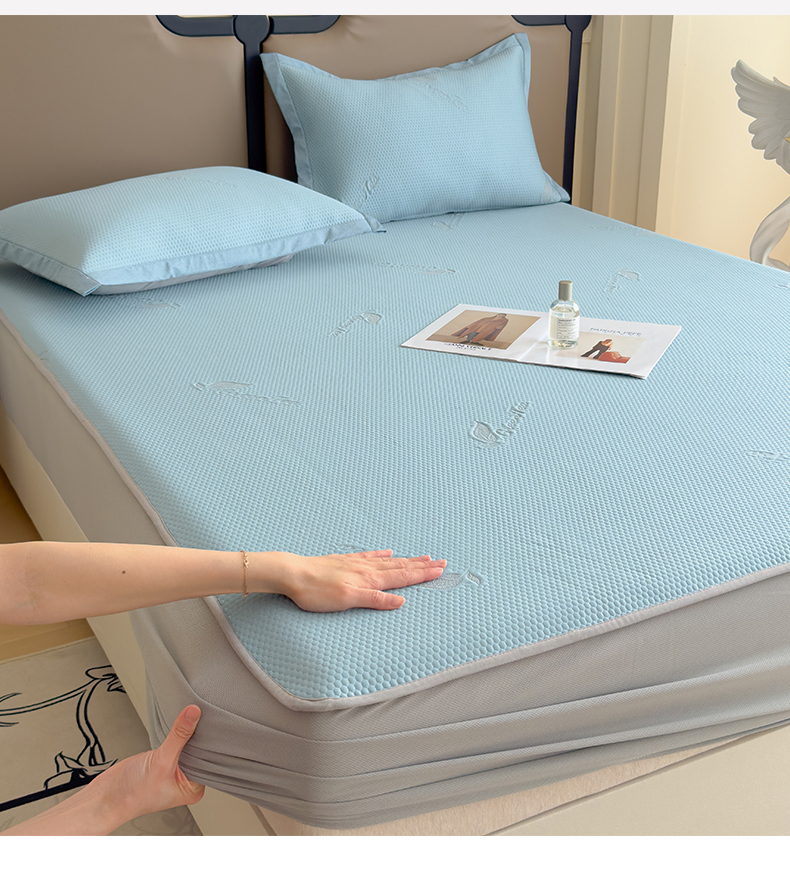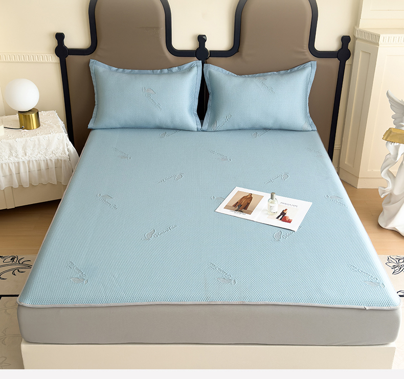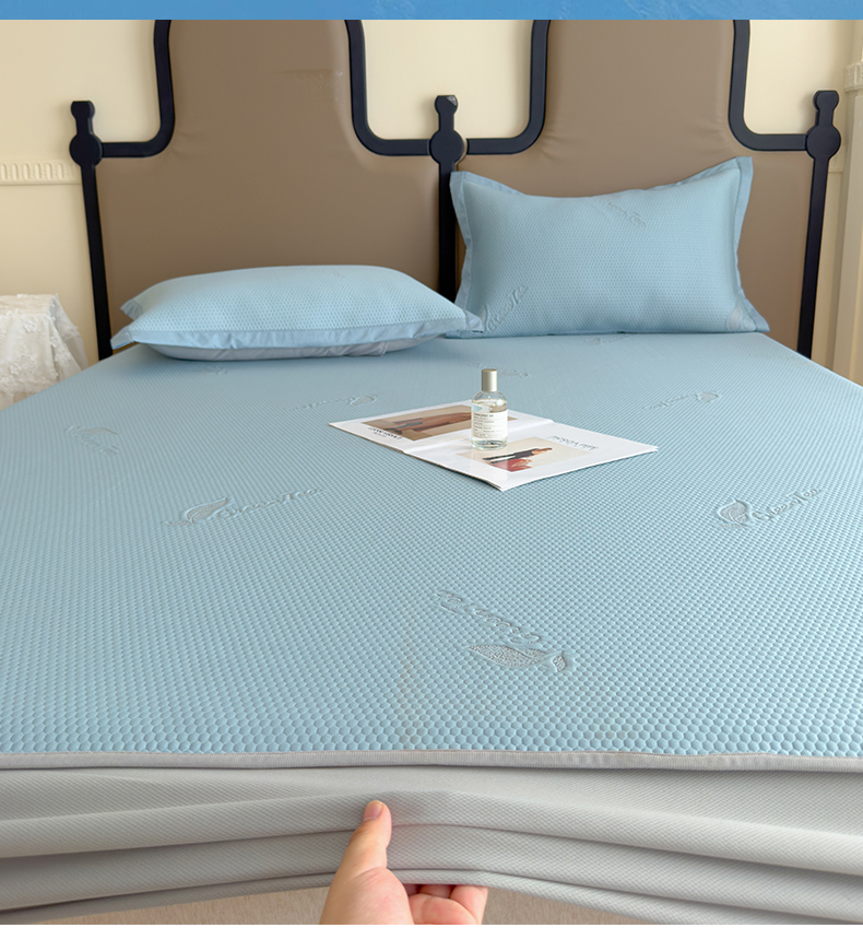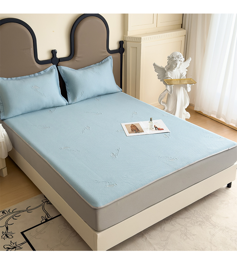 瑞兴纺 2025新款高分子PE软凉席绣花款床笠款 床笠款-沐夕-蓝