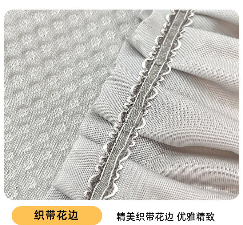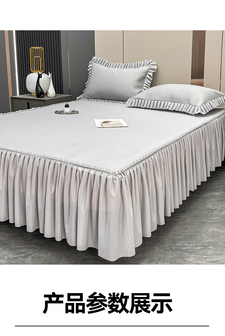 商品名称:瑞兴纺 2025新款高分子PE软凉席款床裙款 床裙款-华夫格-灰