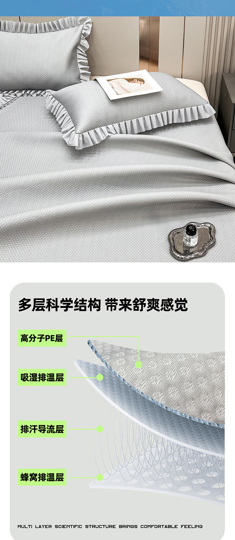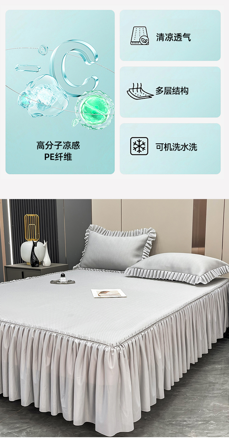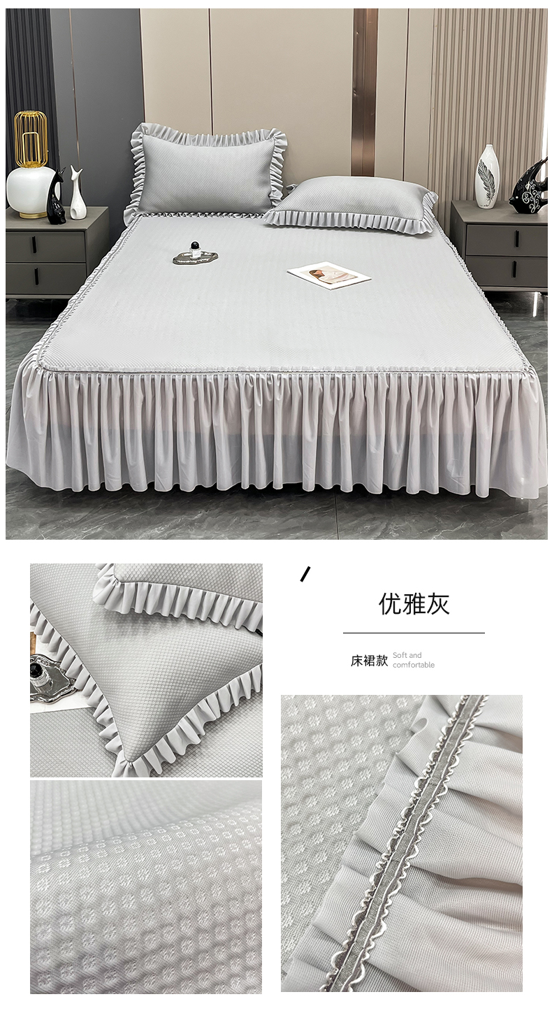 瑞兴纺 2025新款高分子PE软凉席款床裙款 床裙款-华夫格-灰