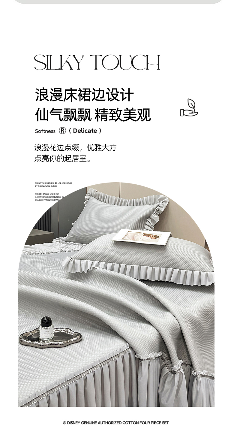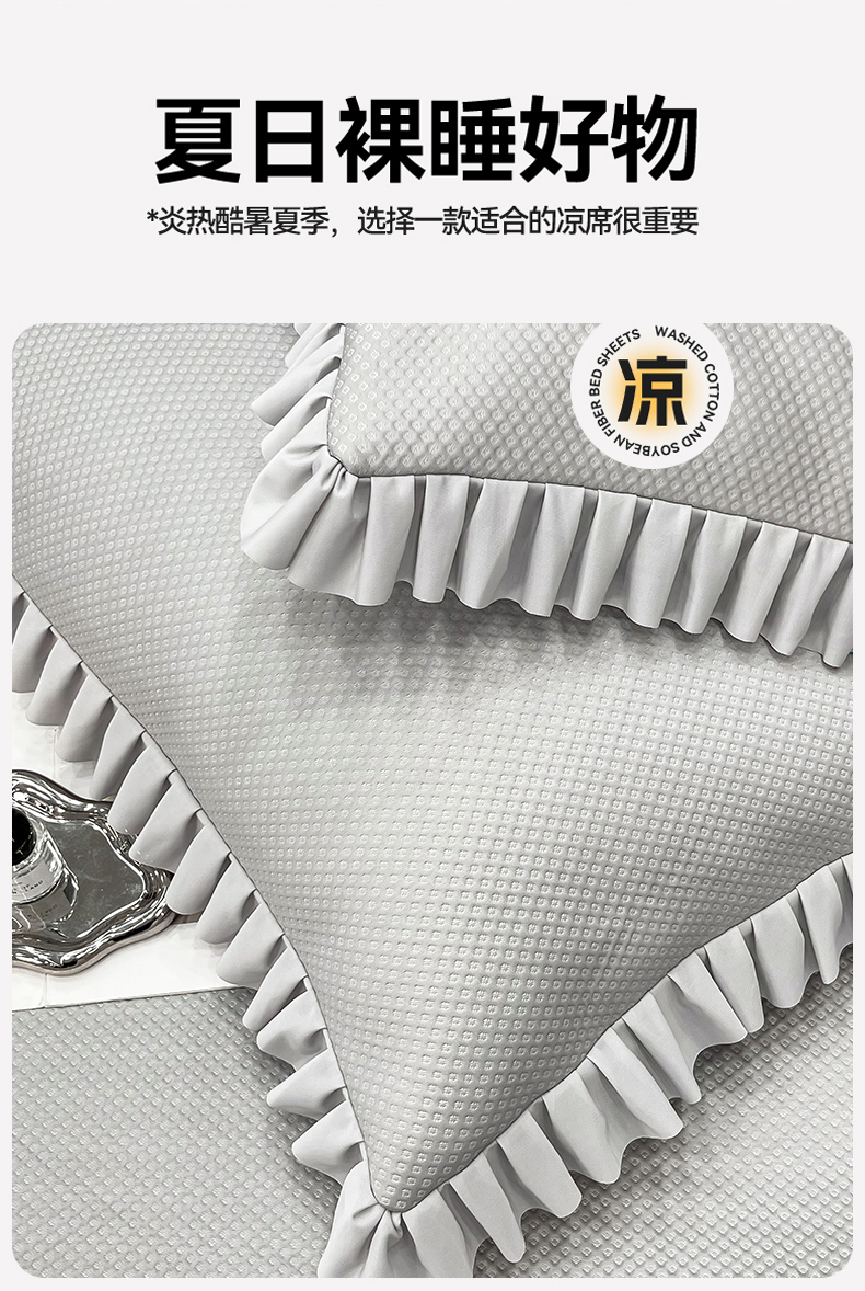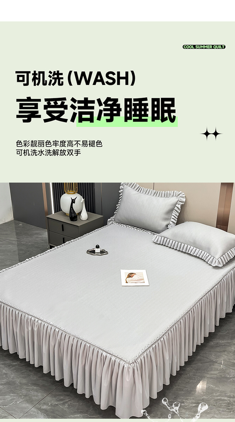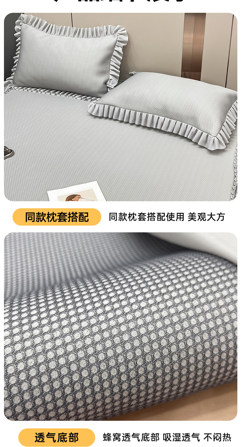 瑞兴纺 2025新款高分子PE软凉席款床裙款 床裙款-华夫格-灰