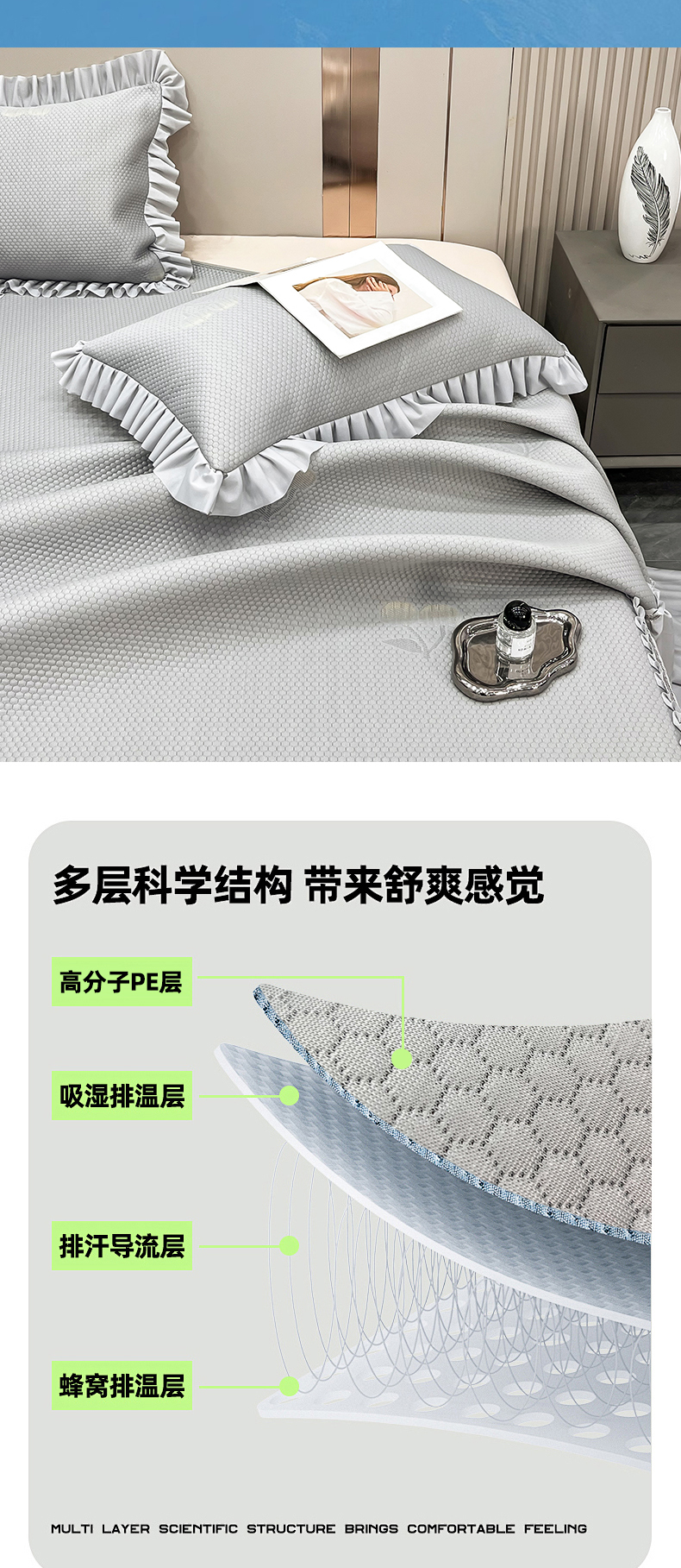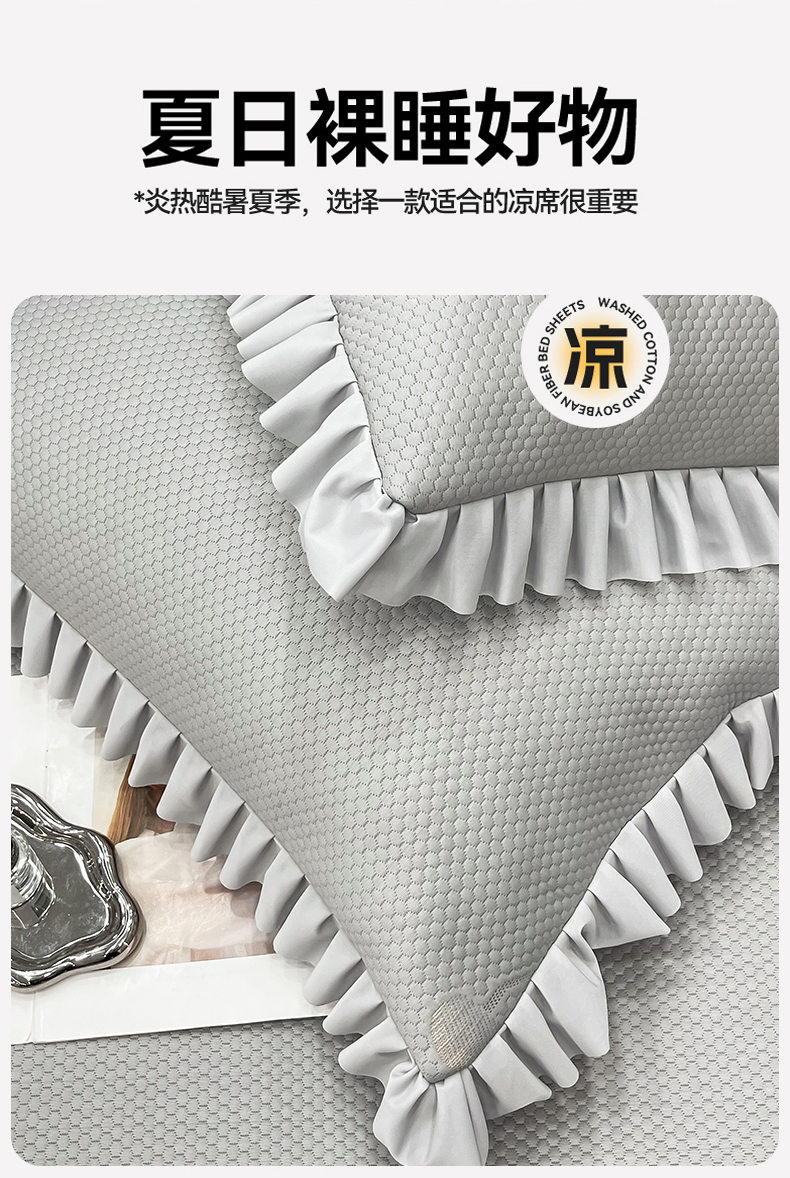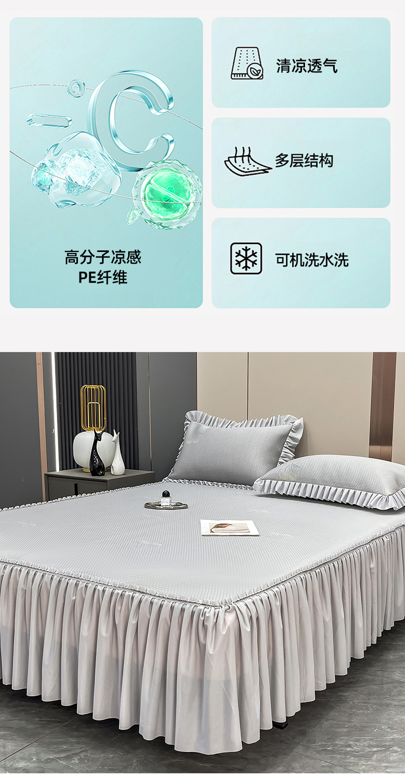 瑞兴纺 2025新款高分子PE软凉席款床裙款 床裙款-小樱桃-灰