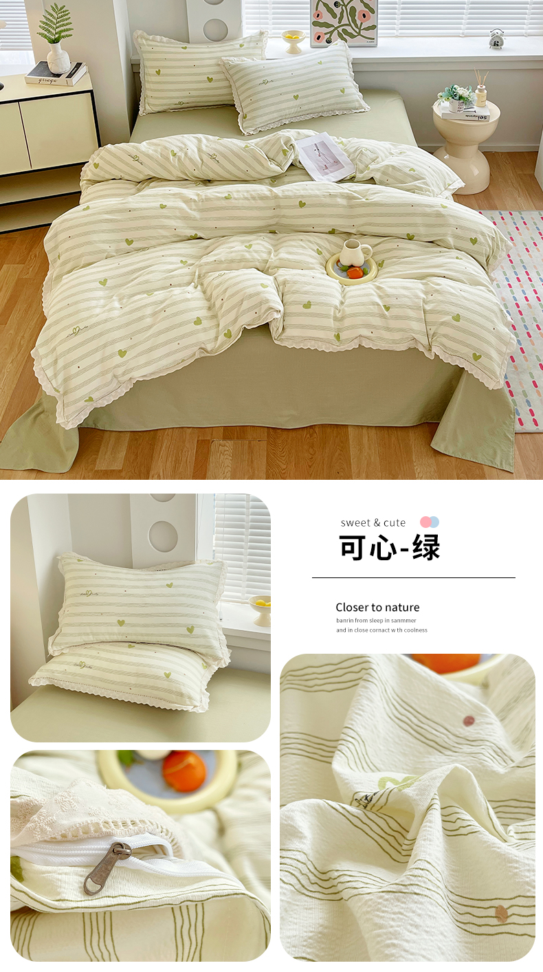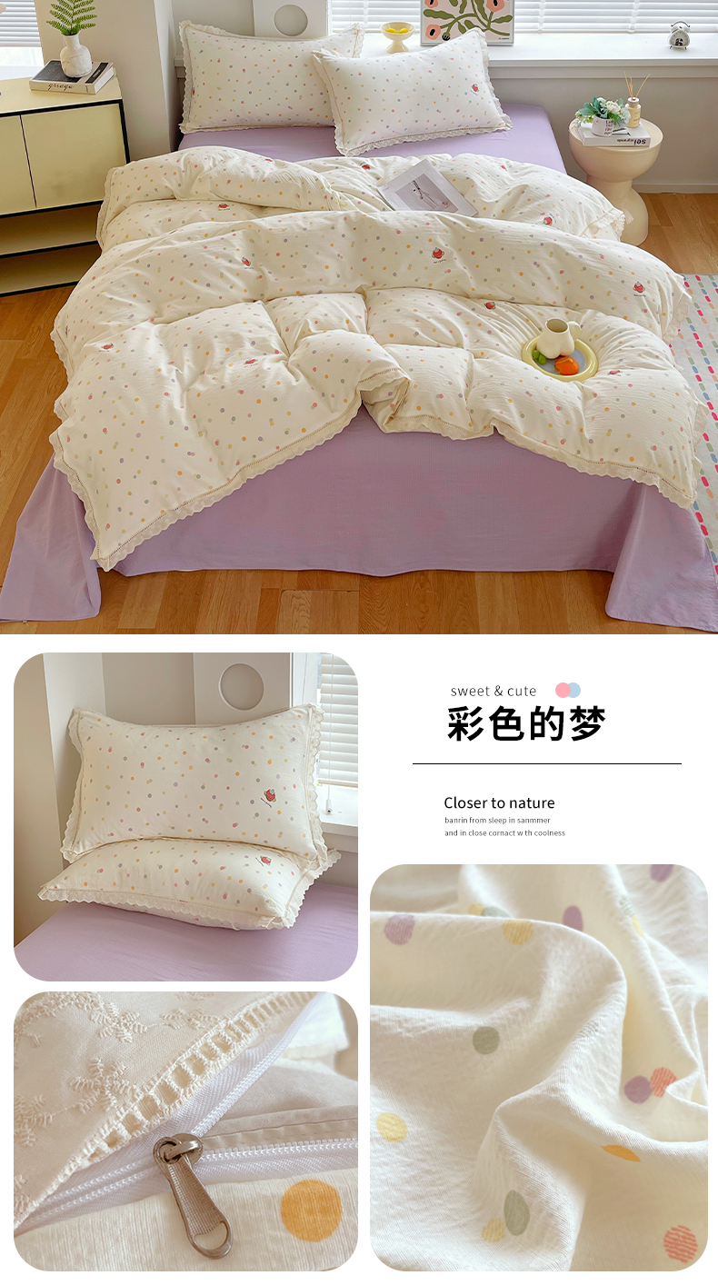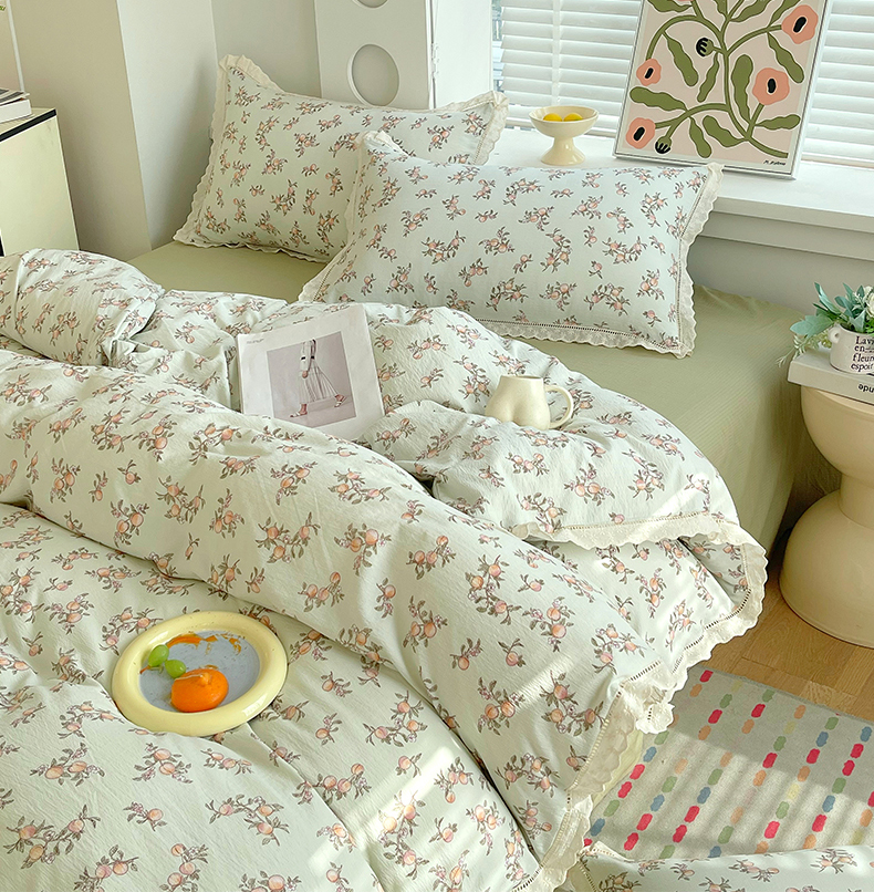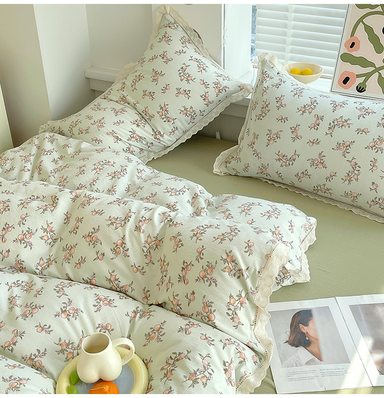 雨彤家纺 2025新款A类高克重云感皱皱双层纱全棉镂空花边款法式四件套-床拍图 秋的果实
