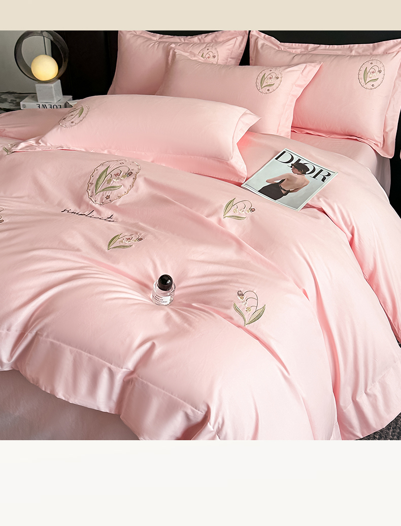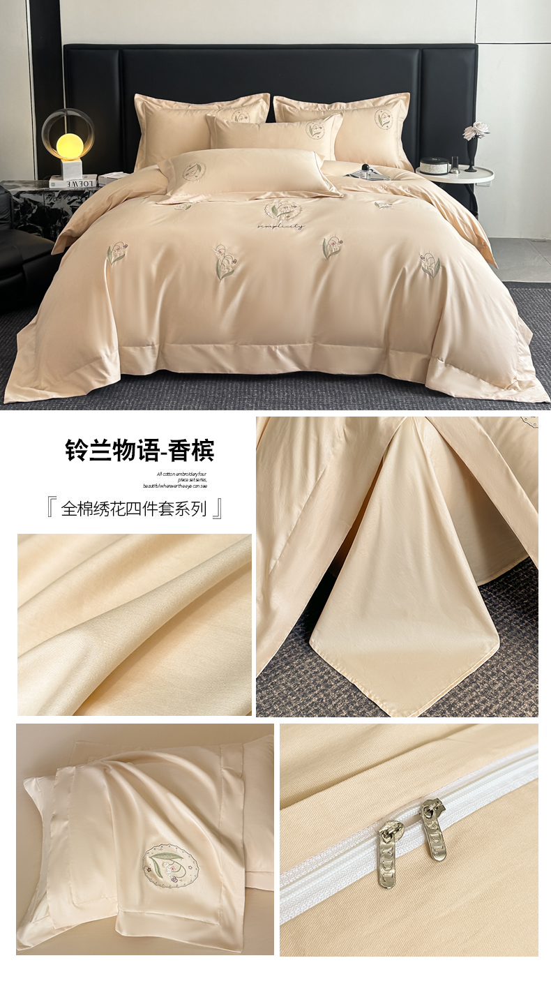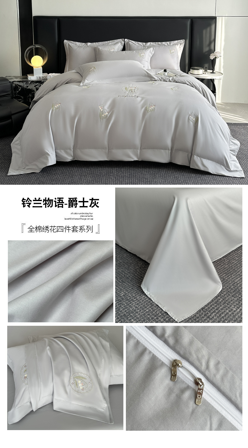 商品名称:(总)(控价)2025新款 专版花型 高克重A类 全棉长绒棉满屏重工刺绣四件套-铃兰物语