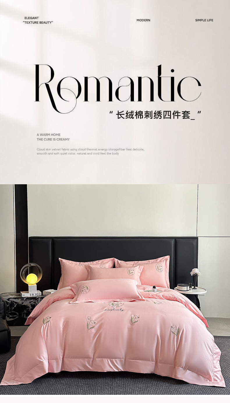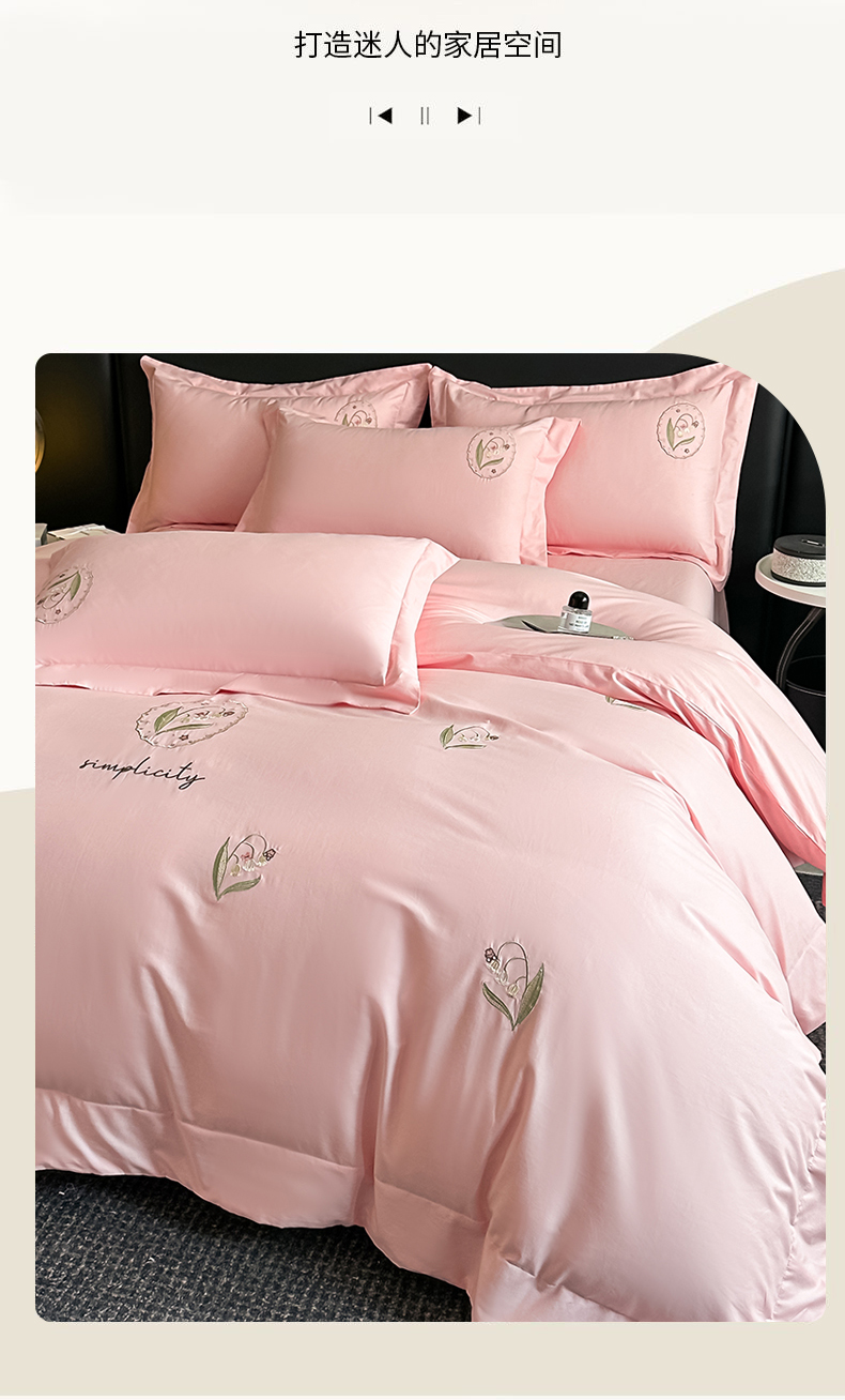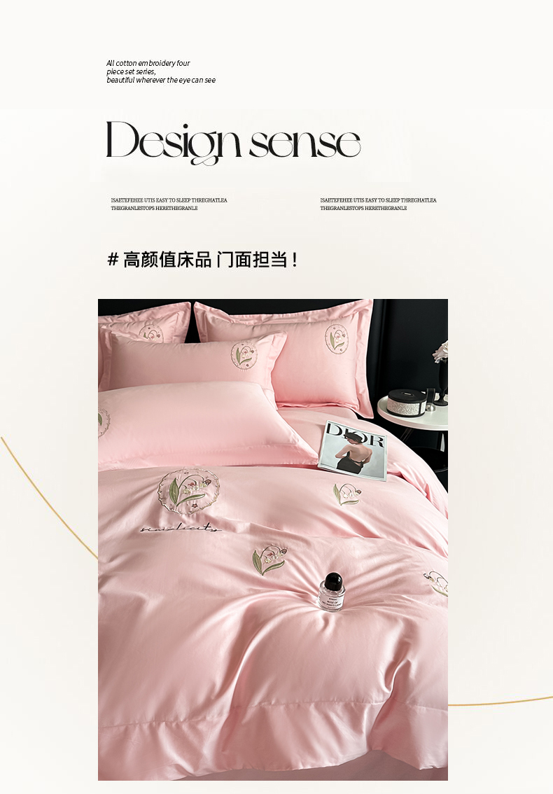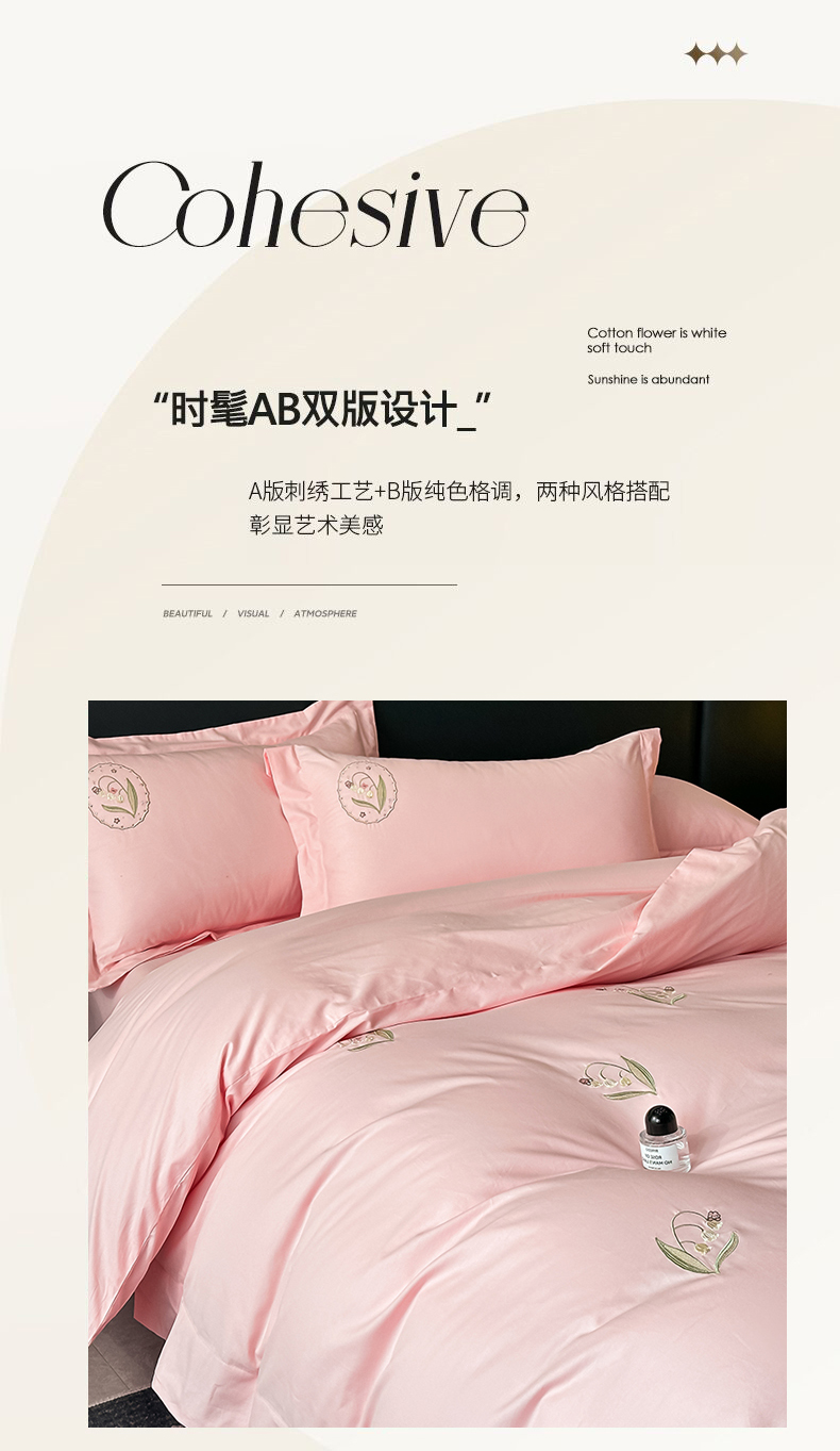 (总)【控价】新方向 2026新款刺绣50s双股全棉贡缎长绒棉四件套-茶花开了,茶花开了-蔷薇粉,茶花开了-香槟,茶花开了-星空蓝