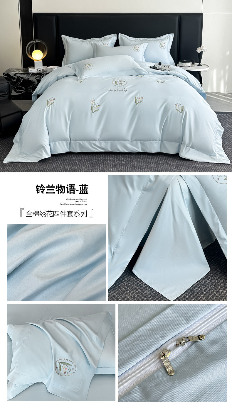 (总)(控价)2025新款 专版花型 高克重A类 全棉长绒棉满屏重工刺绣四件套-铃兰物语
