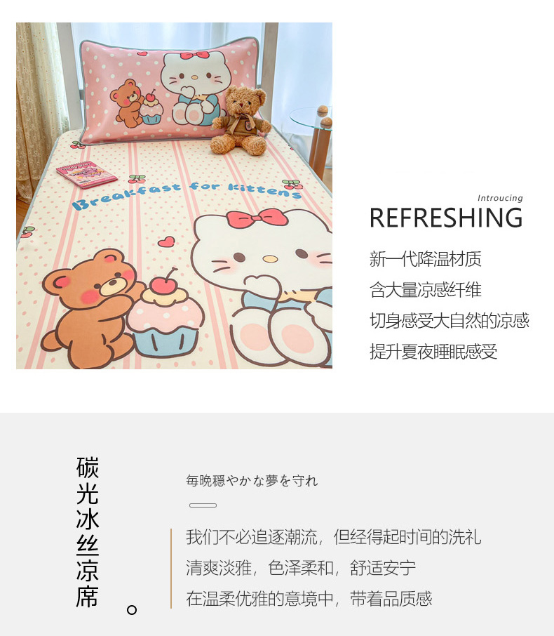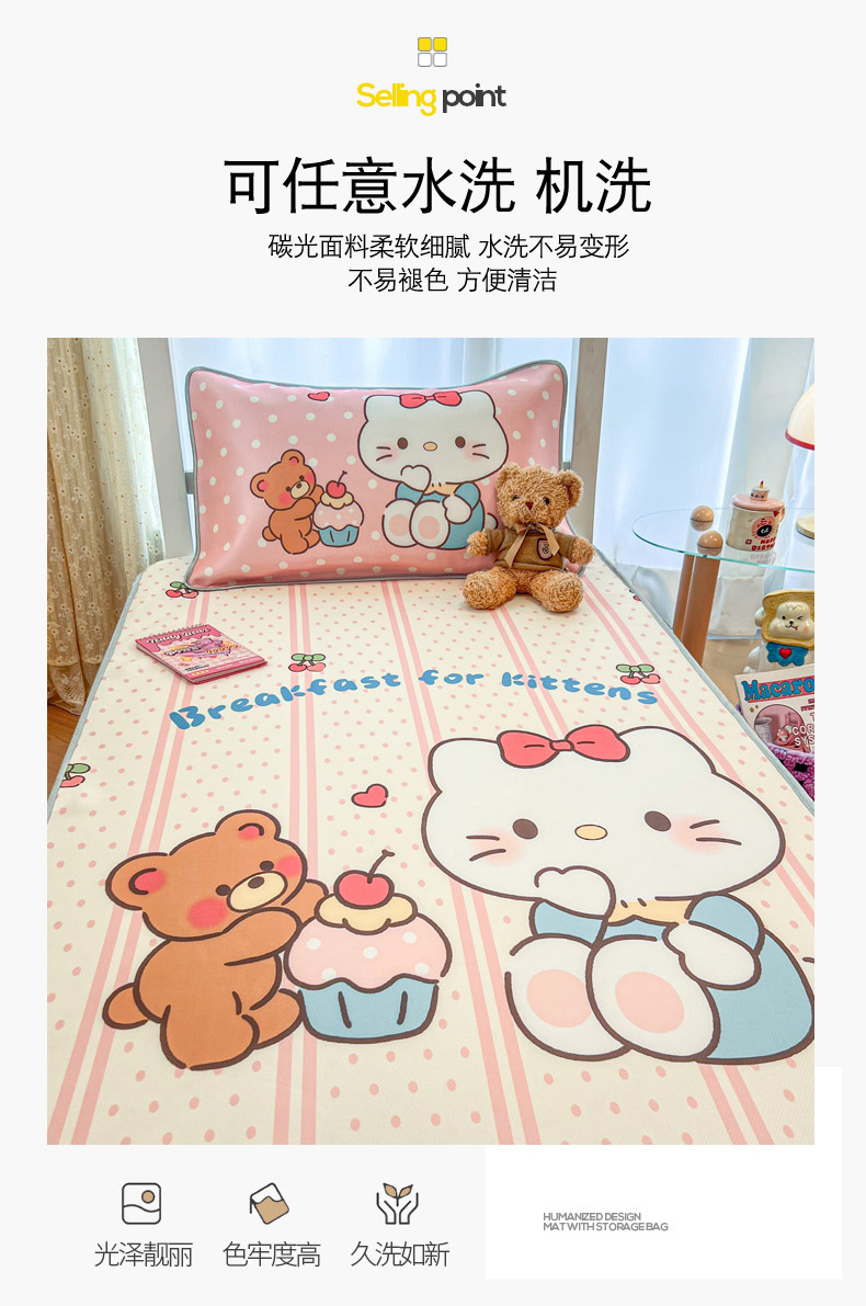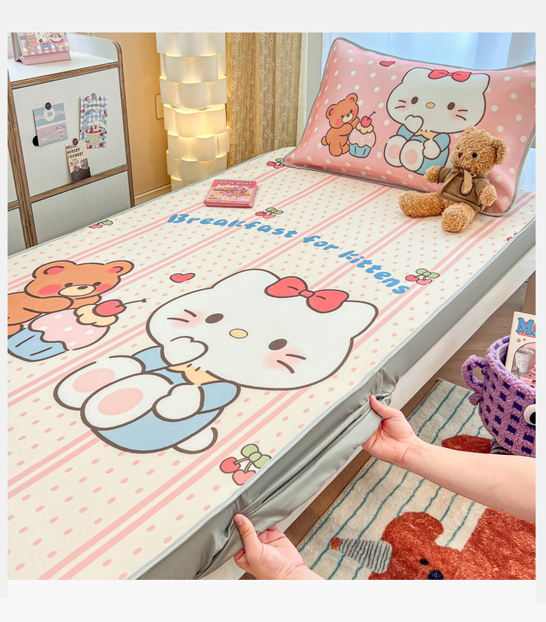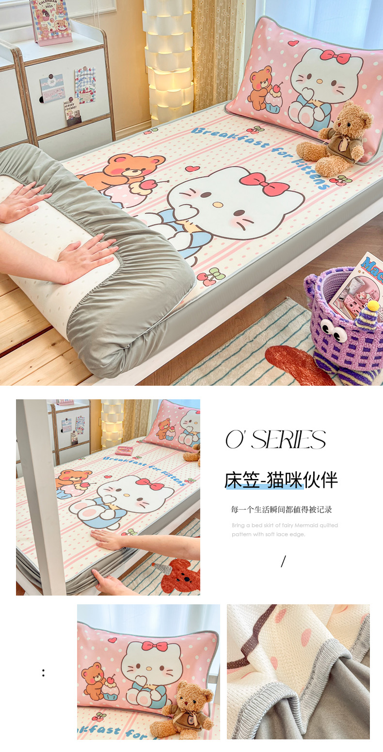 商品名称:柒月家居 2025新款大版冰丝床笠(学生床) 床笠-猫咪伙伴