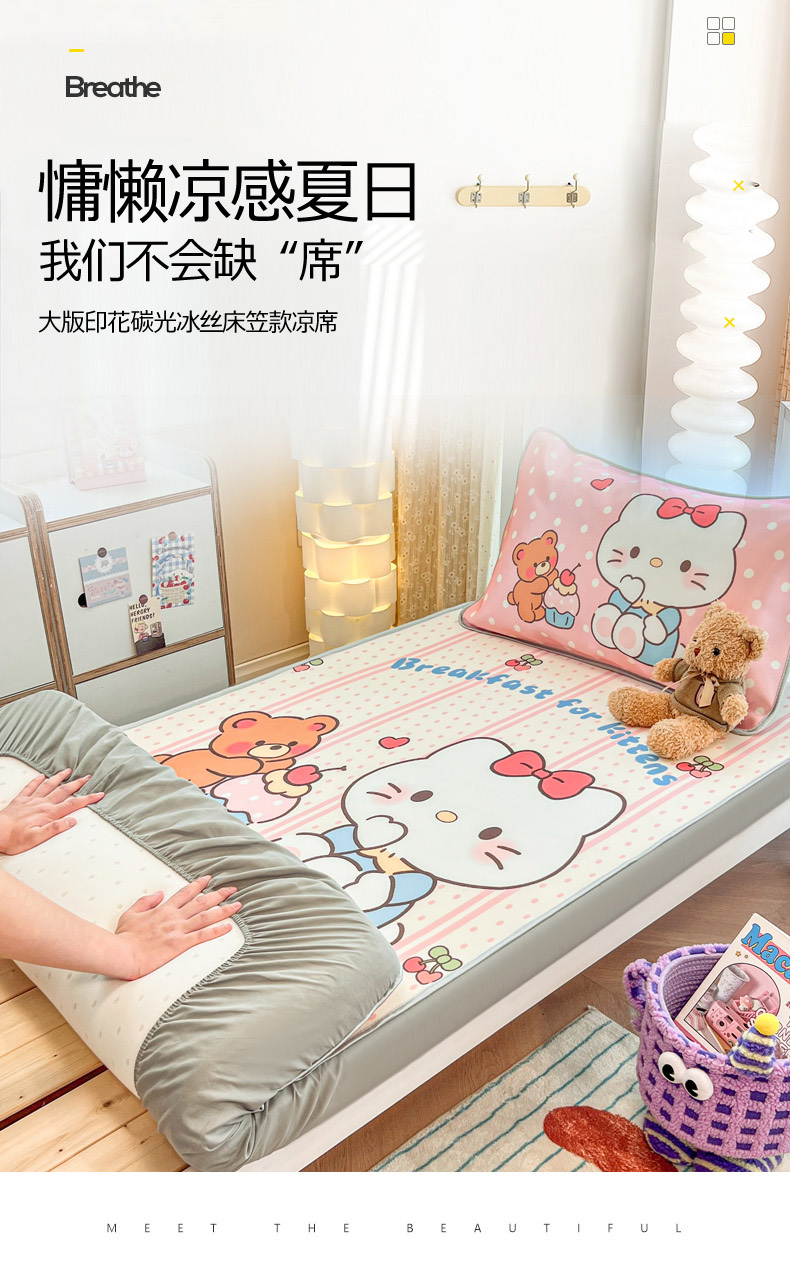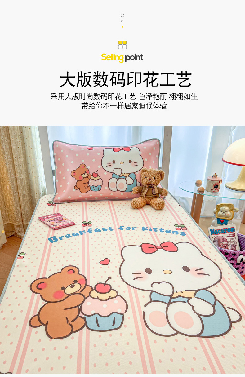 (总)柒月家居 2025新款印花冰藤席(学生床),猫猫日记,爱心布布,爱心蝴蝶结,背影猫,呆萌企鹅,粉色花海,风华-绿,格格熊,花蔓,绿茵,熊猫团子,夜空,字母熊宝
