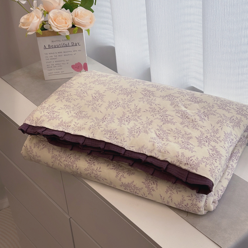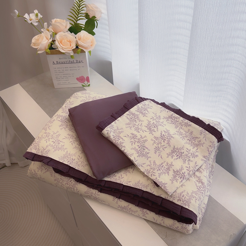 当前位置: 91家纺网 > 商品网购 > 床品套件 > 四件套 > 夏被四件套 > 黛馨 2025春夏新款全棉纯棉A类双层纱工艺款夏被夏凉被空调被四件套皱皱边款 紫萱